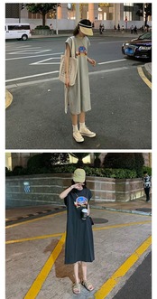 夏服韓国ファッションルーズロングTシャツスカート ノースリーブワンピースレディース 夏物 スタイル コーデ marchs6784929564132