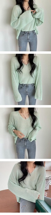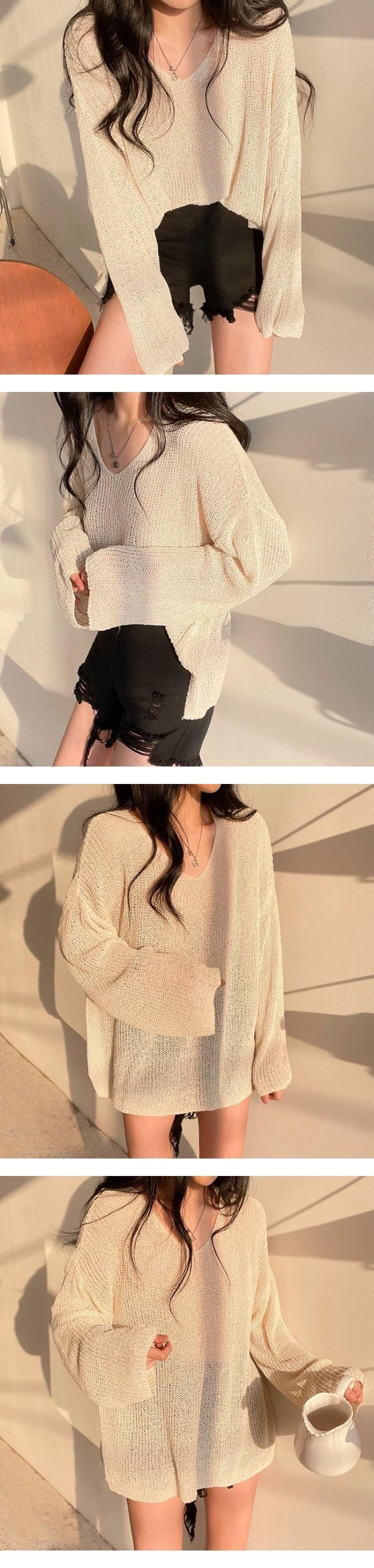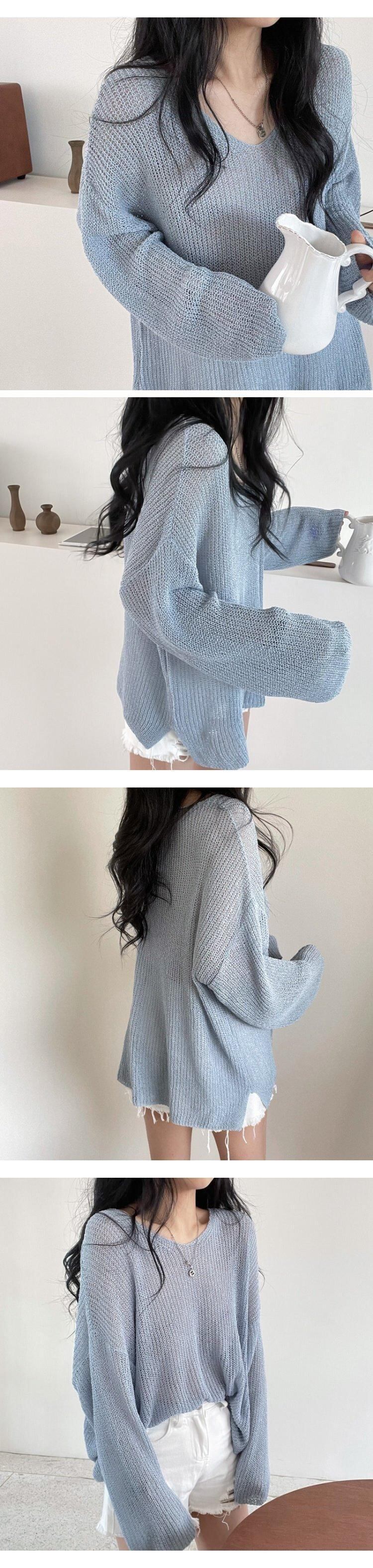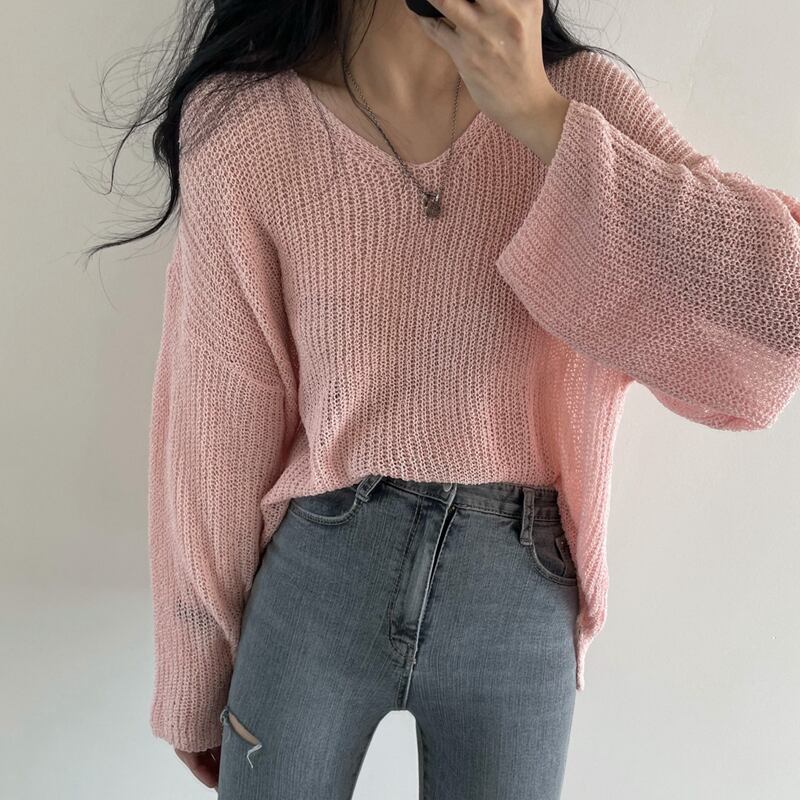 Vネック薄手セーター スプリング秋物ニットゆったりシャツ ブラウス トップス 夏服 ロング 春物 夏物 オータム シルク 長袖 コーデ marchs6762948293461