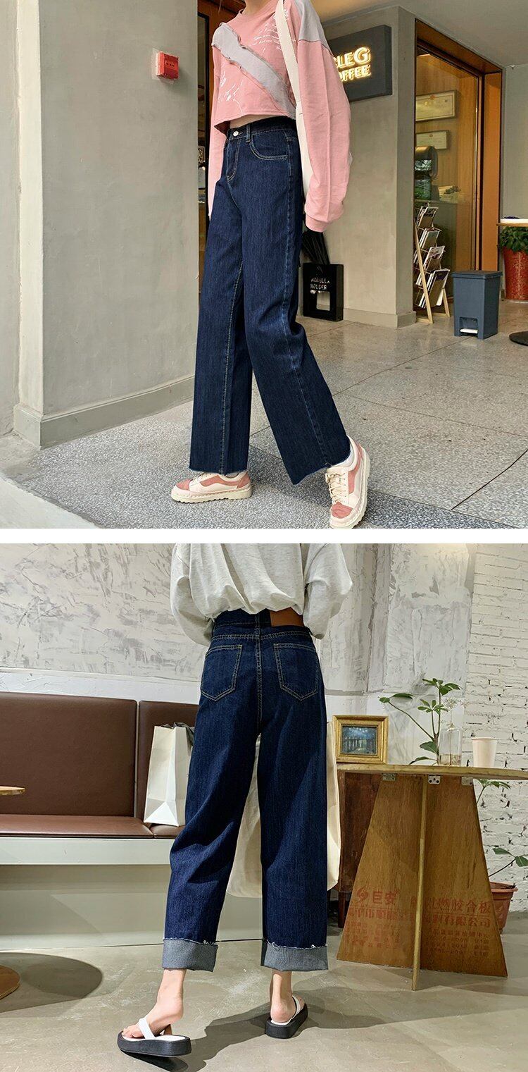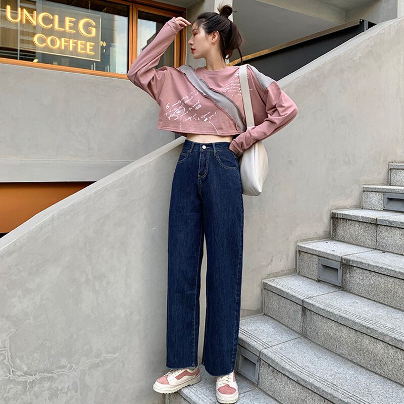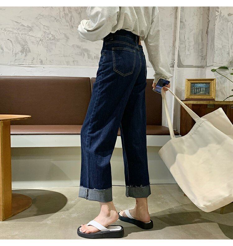 スプリングダークブルーハイウェストジーンズ ルーズパンツ 薄手 春物 ウエスト コーデ marchs6780518687451