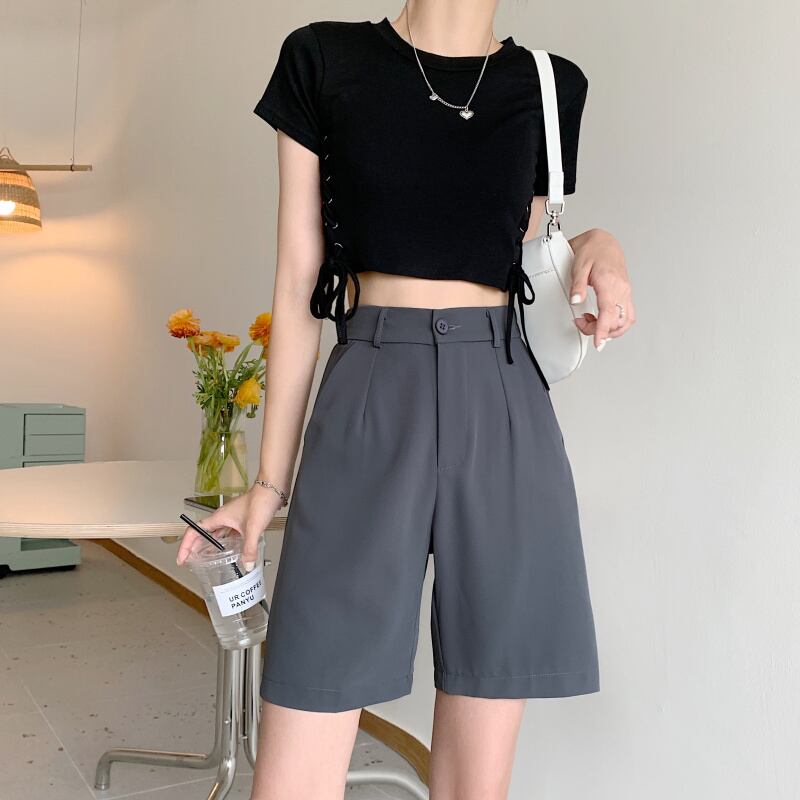 ショーツ 夏服スリムハイウェストルーズパンツ カジュアル 夏物 ウエスト コーデ marchs6776913308529