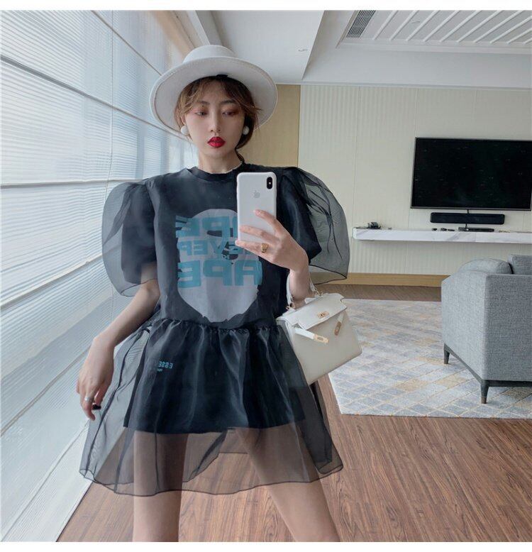 色:白いTシャツ,黒いTシャツ,黒いベール,青いガーゼ