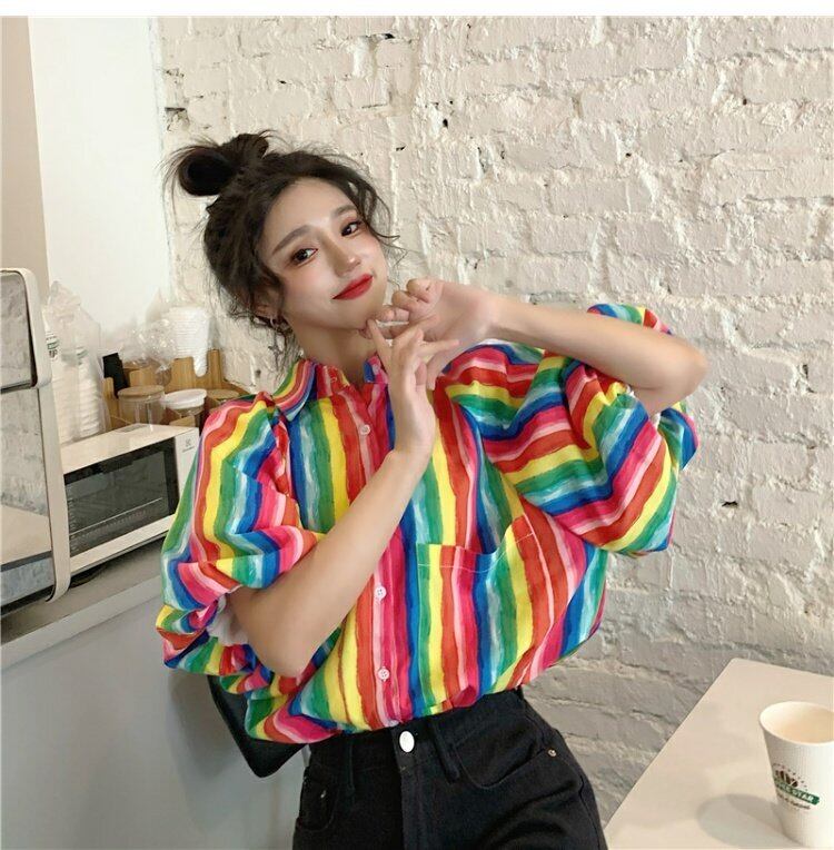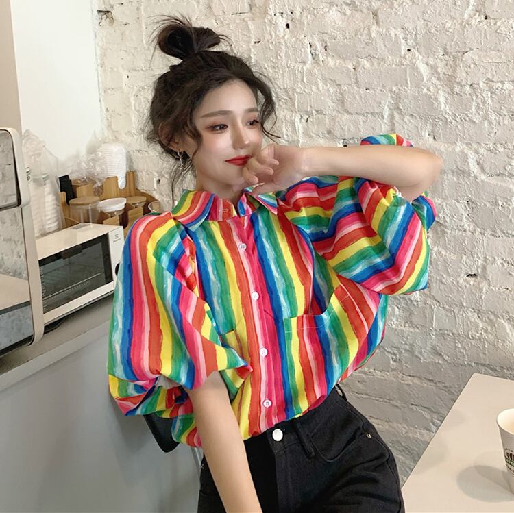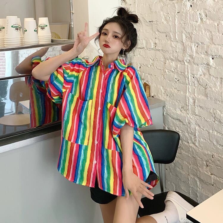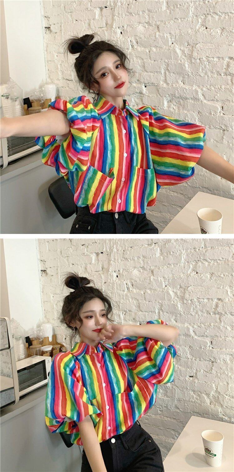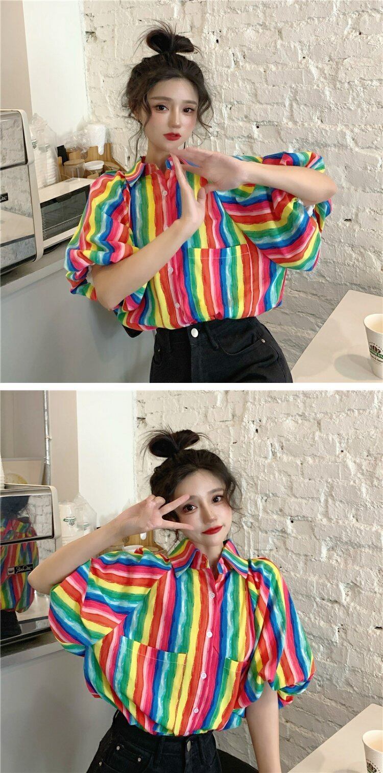 夏服スタイルストライプトップス スタンダードスリーブシャツ レディース レトロ 大人ガーリー スウィート キュート カジュアル 夏物 コーデ marchs6754951330037
