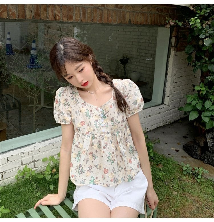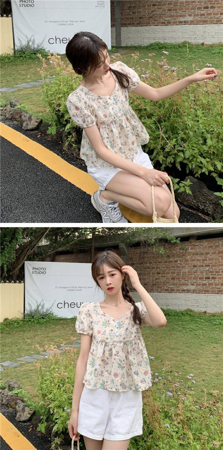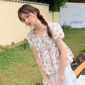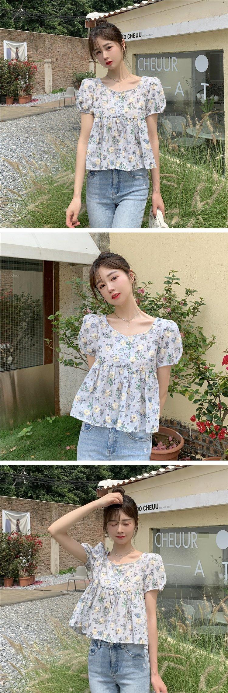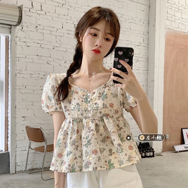 シャツ 夏服フローラルスリーブショート半袖トップス ハーフスリーブ 大人ガーリー スウィート キュート カジュアル 夏物 花柄 コーデ marchs6796723326474