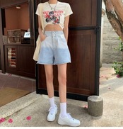トレンドダブルウェストショーツ 夏服ルーズ薄手ジーンズ レディースパンツ 夏物 ウエスト コーデ marchs6762001098729
