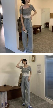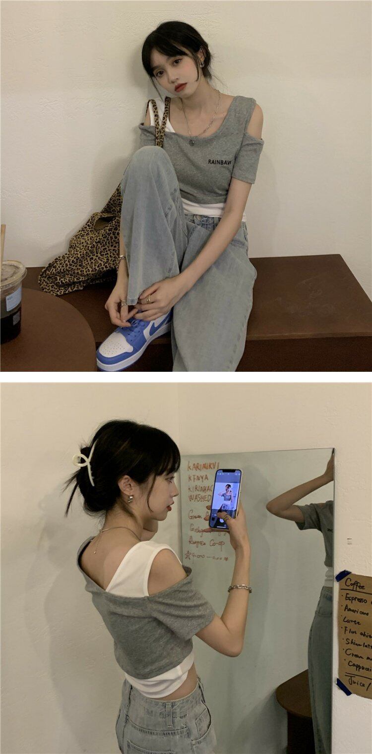 ストラップレスショートTシャツクロップドトップス 夏服スタイル 夏物 スクウェア コーデ marchs671727224923