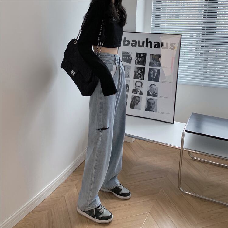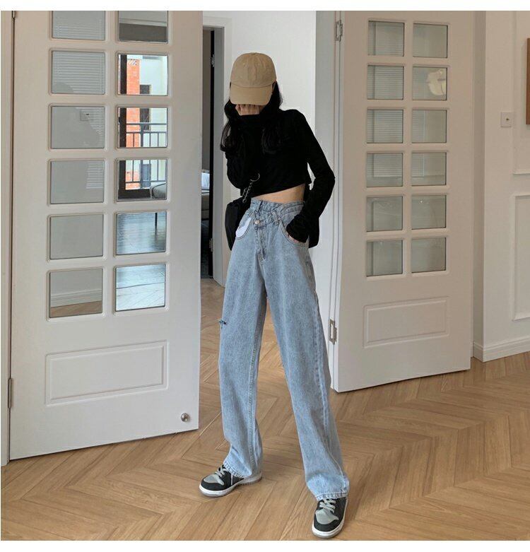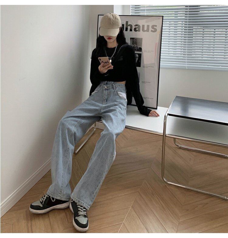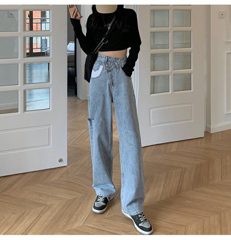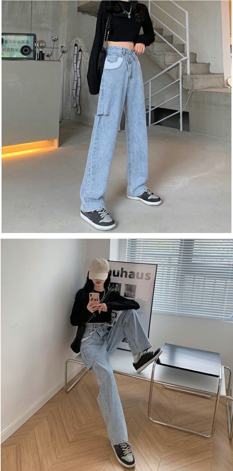 夏服パンツ ハイウェストルーズジーンズ レッド 夏物 ウエスト コーデ marchs6770892975064