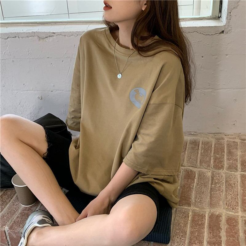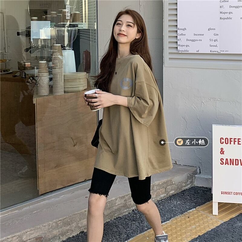 ルーズ韓国ファッションスタイルTシャツシャツ レディース夏服ラウンドネックゆったりトップス 夏物 Oネック ミドル丈 コーデ marchs6784556452118