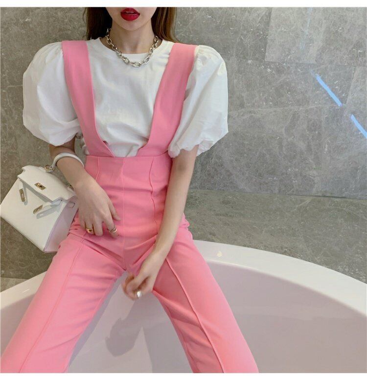 レディース夏服パフスリーブスリーブホワイトシャツ パンツ 大人ガーリー スウィート キュート カジュアル 夏物 コーデ marchs6738789005859