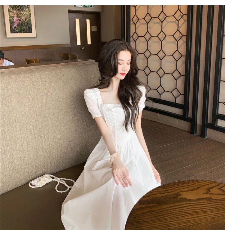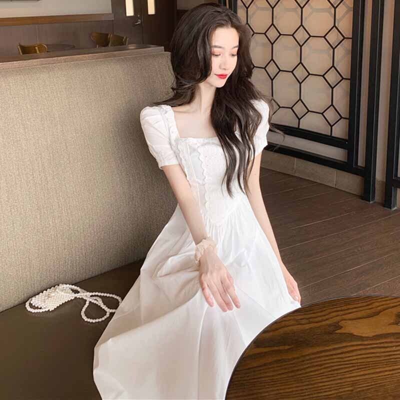 夏服スタンダードホワイトスカート ロングワンピースレディース レトロ レース 夏物 コーデ marchs6763339857708