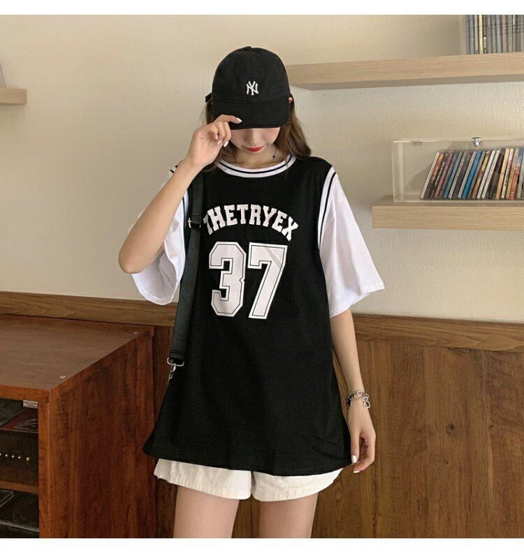 Tシャツレディース夏服ルーズ韓国ファッショントップス トレンド 夏物 ボーイズ スタイル ミドル丈 コーデ marchs6747031325184
