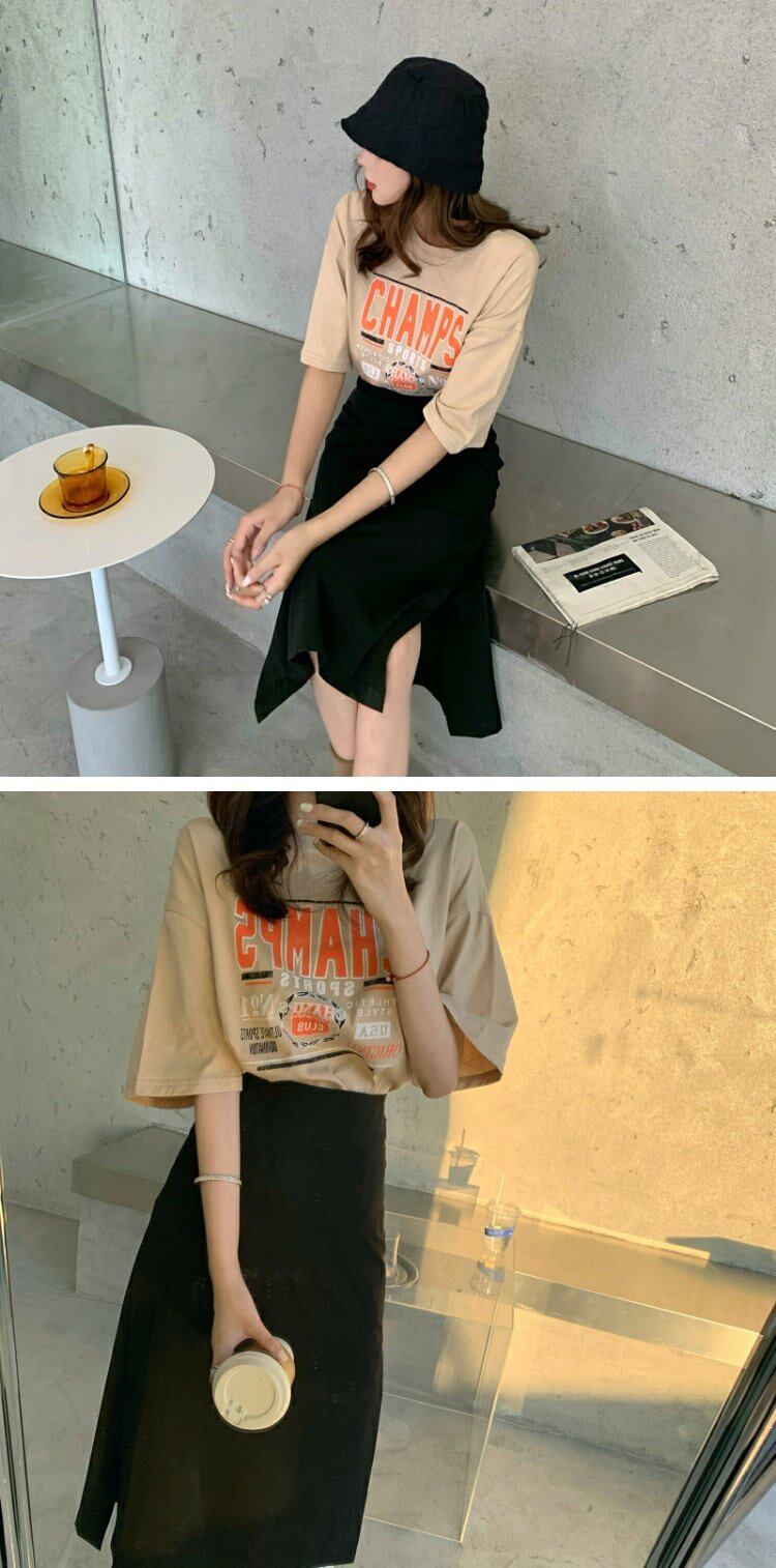 スカート レディーススプリングルーズTシャツサイドアーム 春物 コーデ marchs6731614203568