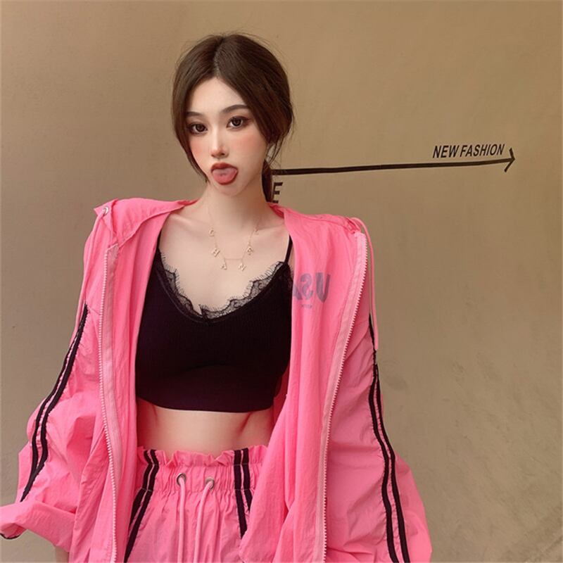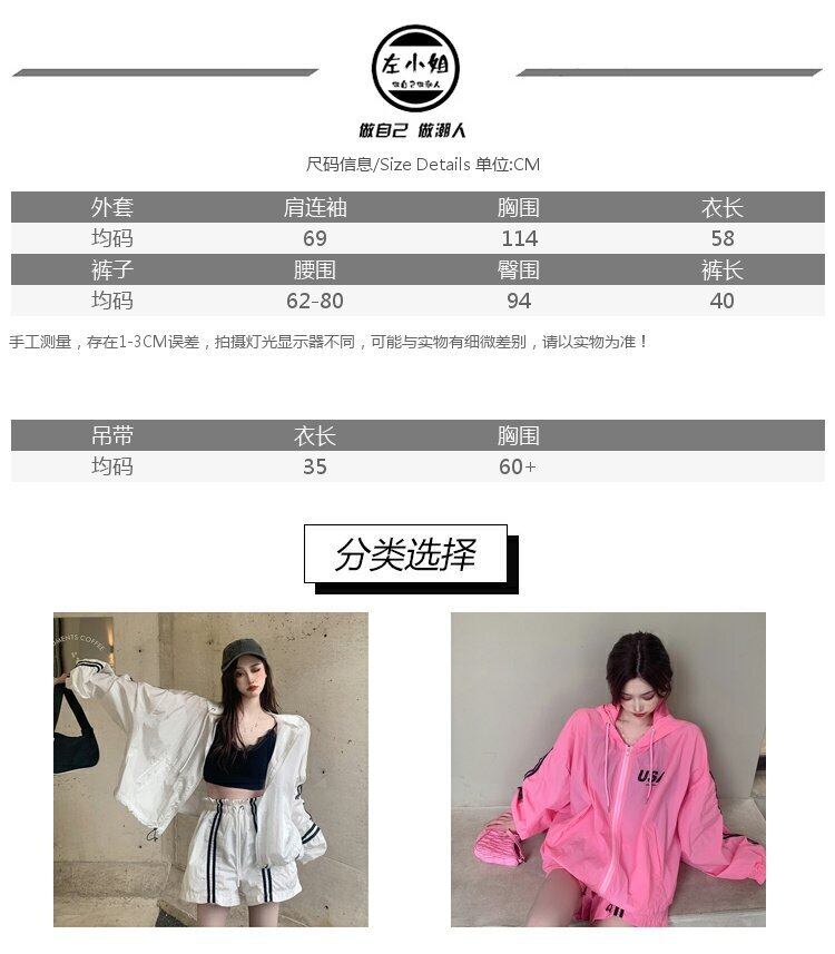 色:ブラックサスペンダー,白いアンチサックコート,ピンクピンクのジャケット,ホワイトショーツ,ピンクのショートパンツ