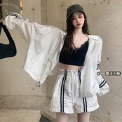 スタイルレディース夏服プリントフードコート ショーツ ロング 夏物 長袖 コーデ marchs6739667952556