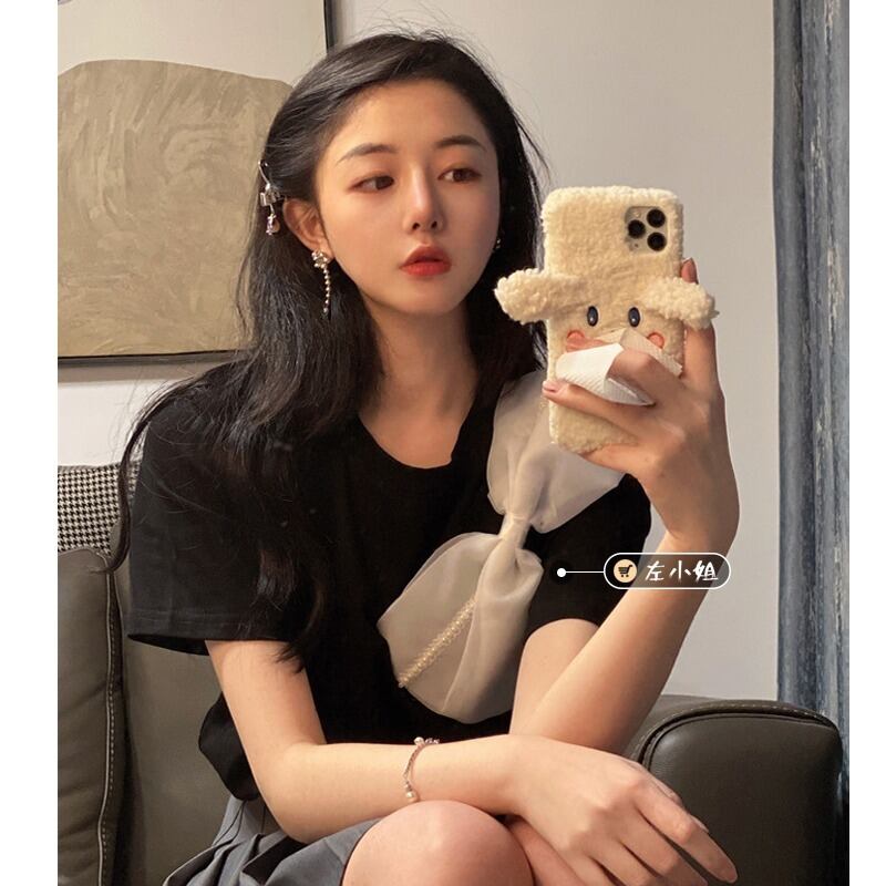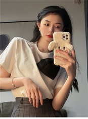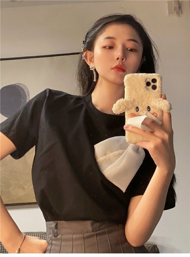 トップス 夏服韓国ファッションルーズブラックTシャツレディース リボン 大人ガーリー スウィート キュート カジュアル 夏物 コーデ marchs6760467439630