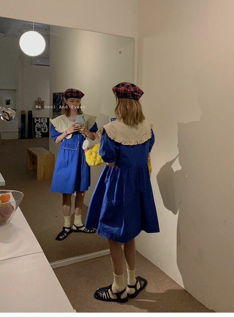 ワンピースレディース夏服カラーブルーAラインスカート 夏物 コーデ marchs6780513975294