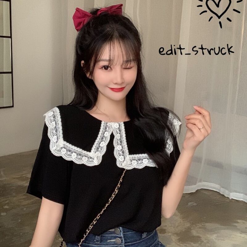 Tシャツスタンダードスタイルトップス カラー夏服 レトロ レース 夏物 コーデ marchs6796192762751