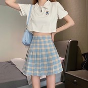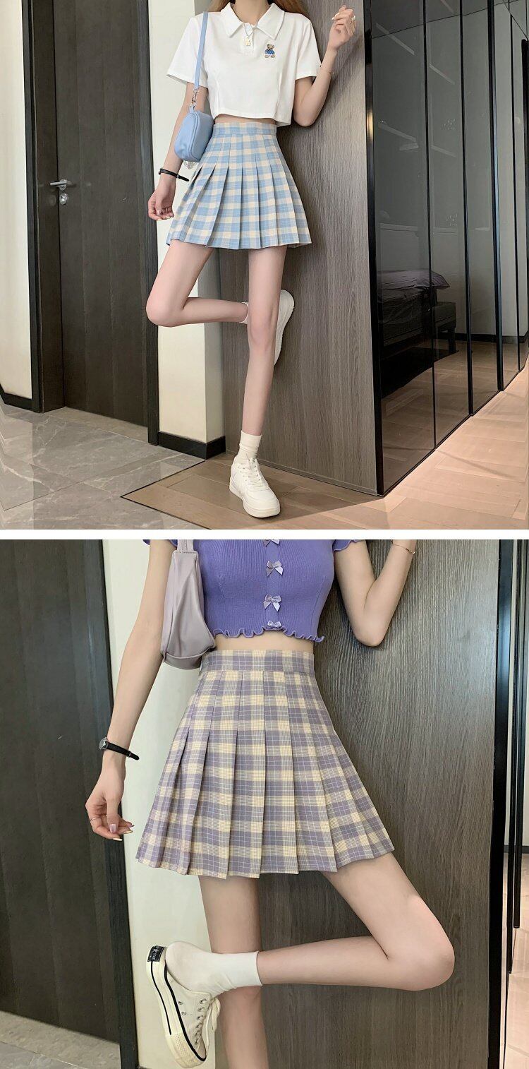 夏服韓国ファッションスタイルスカート レディースハイウェストウェストスリム格子柄プリーツショート 夏物 ウエスト コーデ marchs6782253687712