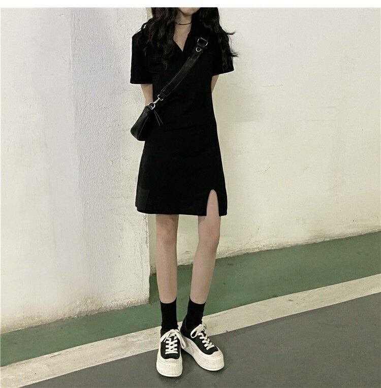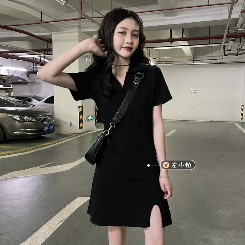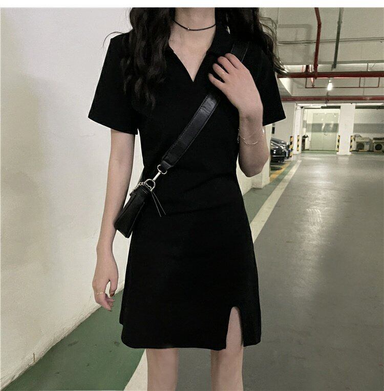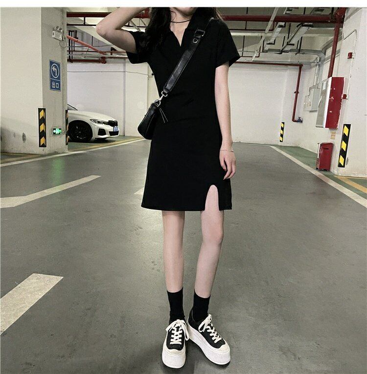 スタンダードワンピースレディースブラックスカート カラー夏服 レトロ 夏物 コーデ marchs6758998108919