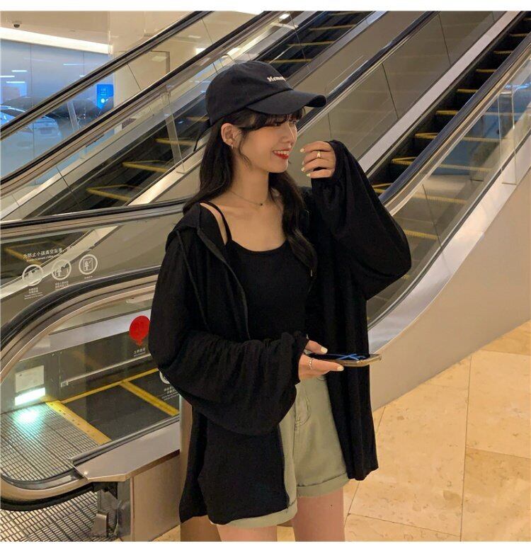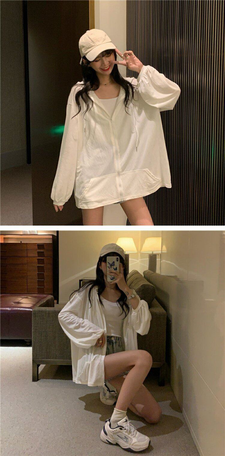 夏服ジャケット ホワイトフード薄手レディーストレンドルーズ ロング 夏物 長袖 コーデ marchs6720691289942