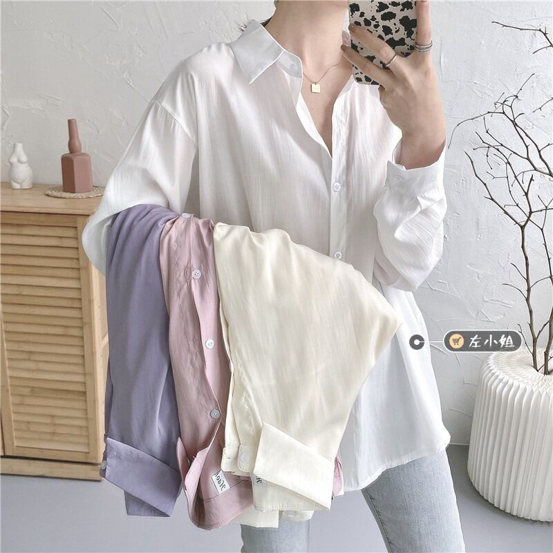 スプリング秋物韓国ファッションルーズホワイト長袖スリーブシャツ ジャケット レディース ロング 春物 オータム ミドル丈 コーデ marchs6792622194747