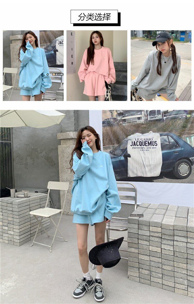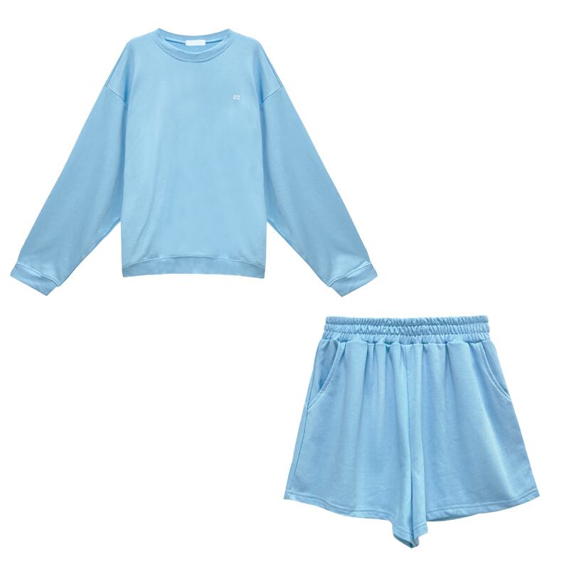 レディーススプリング秋物夏服ルーズセーター ブルーショーツ 春物 夏物 オータム コーデ marchs6788043595237