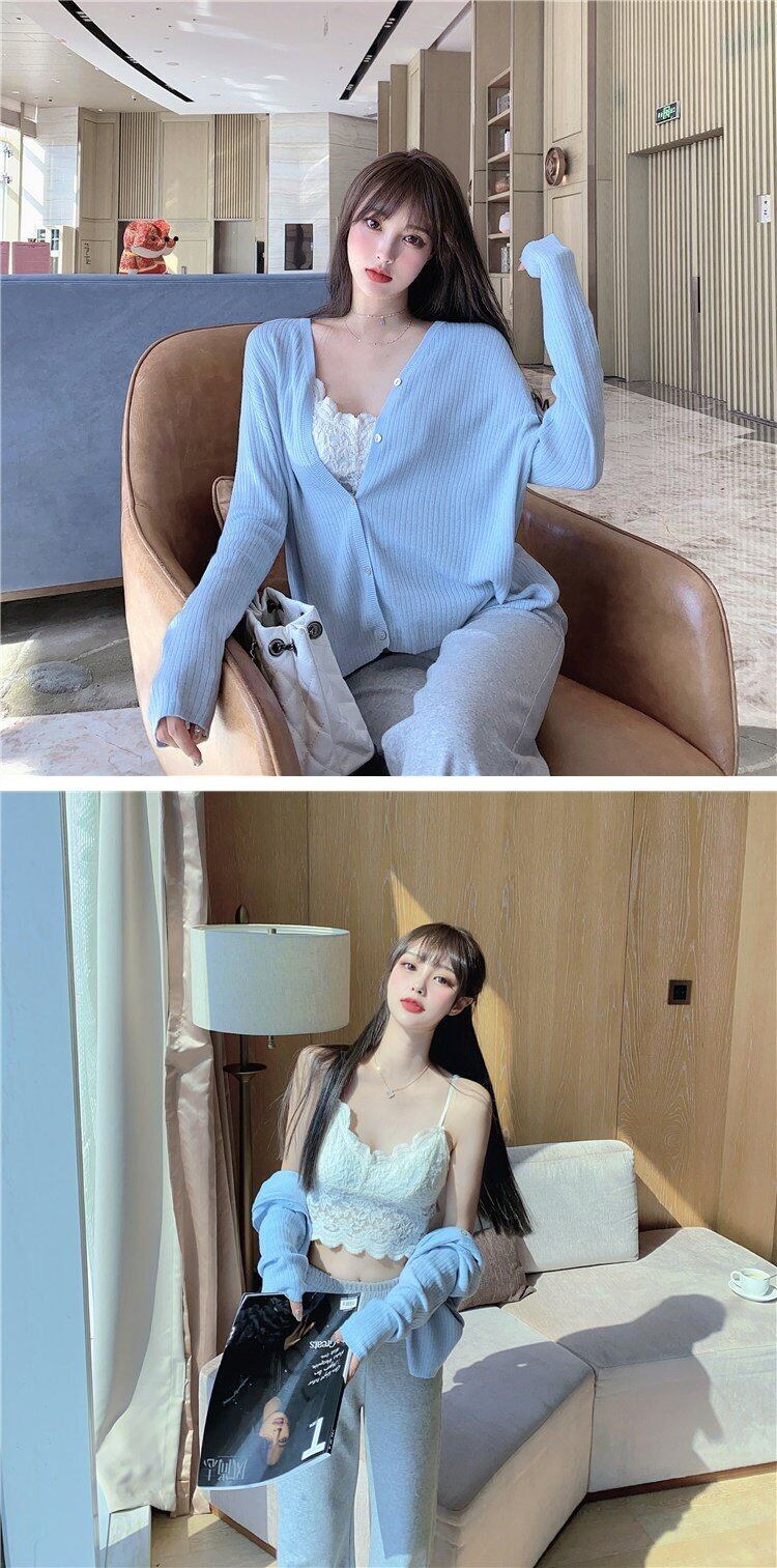 スプリングレースニットジャケット 薄手パンツ レディース 春物 コーデ marchs6751363700033