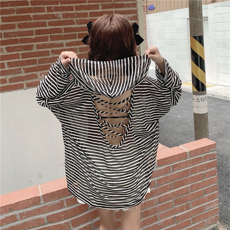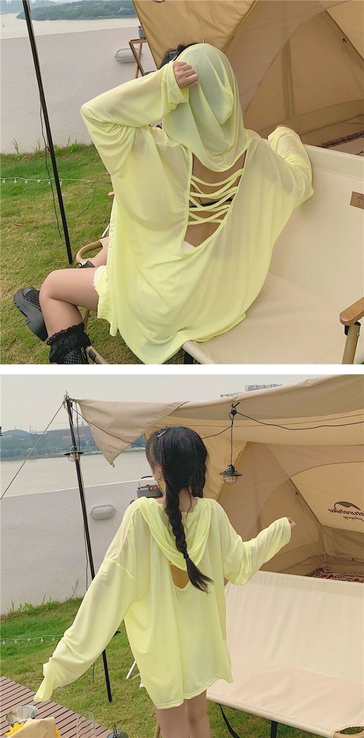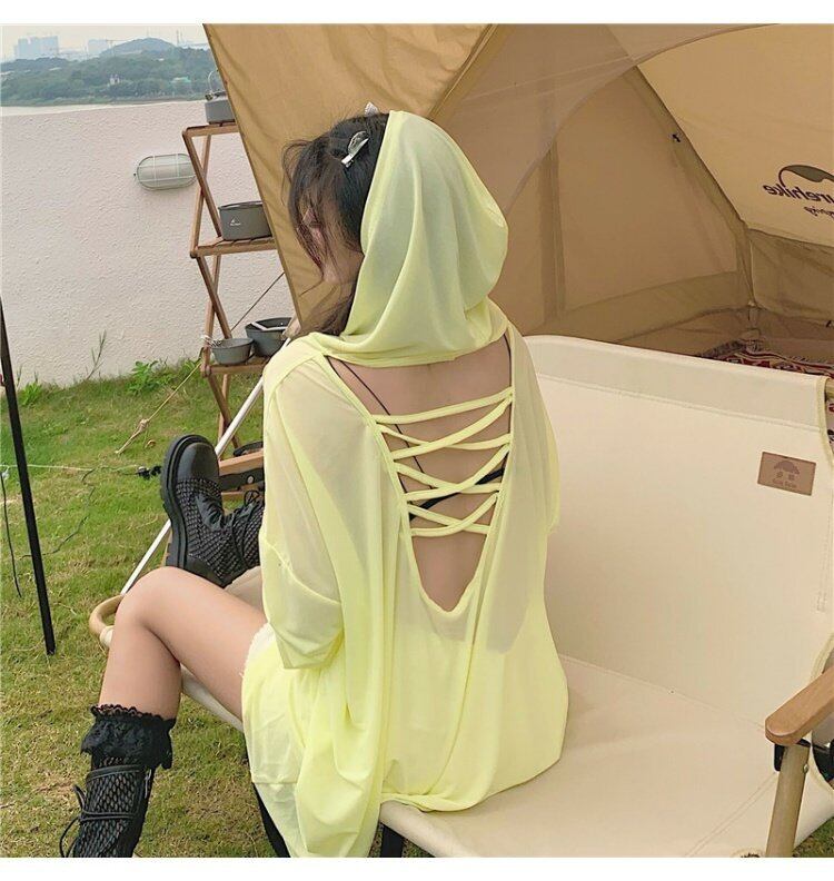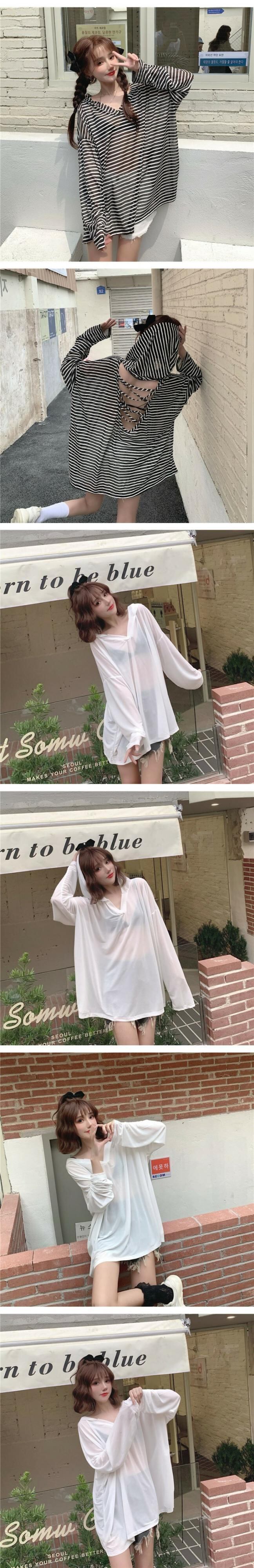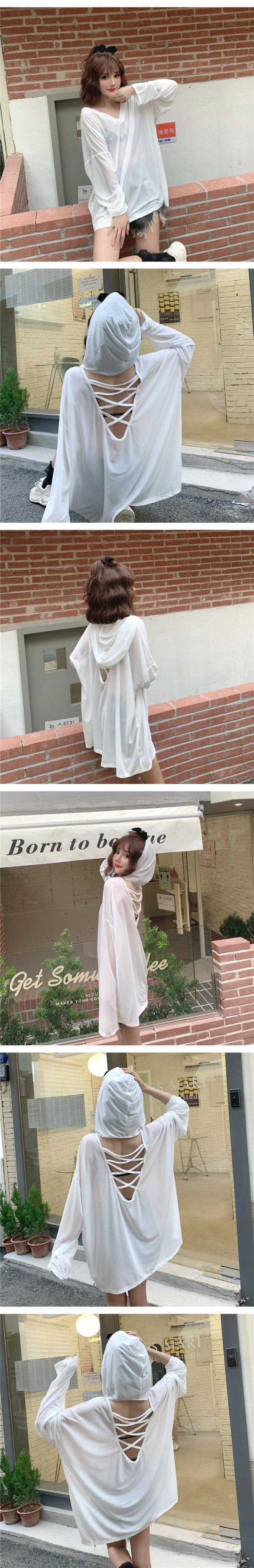 ルーズ薄手フード夏服韓国ファッションスタイルソリッド カラーTシャツレディース ロング 夏物 ソリッドカラー 長袖 コーデ marchs674503332254