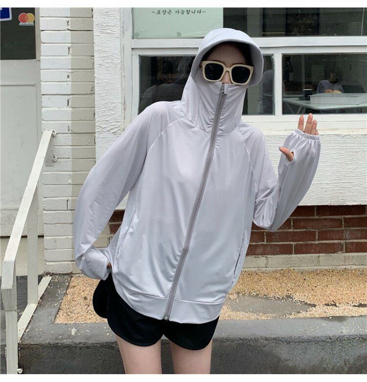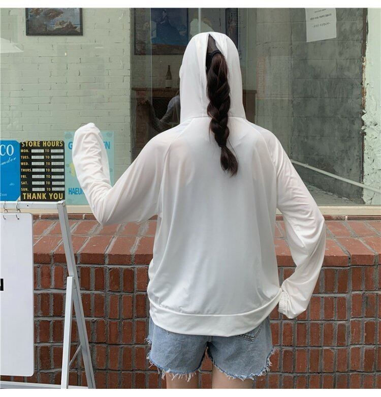 ホワイト夏服カーディガン薄手フードジャケット ロング 夏物 シルク 長袖 コーデ marchs6715238547504