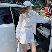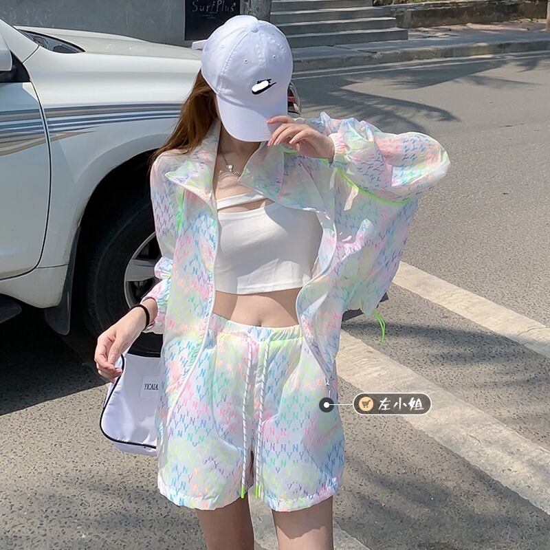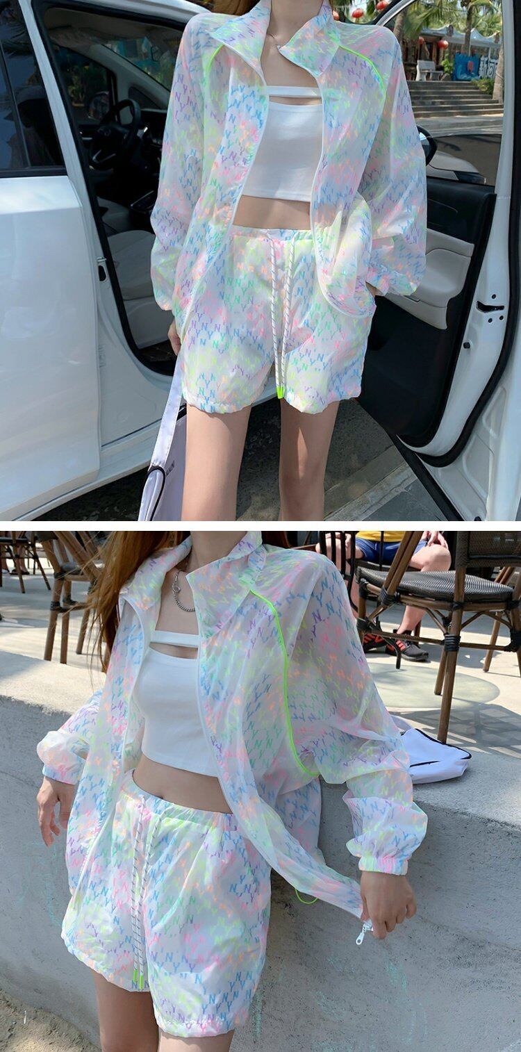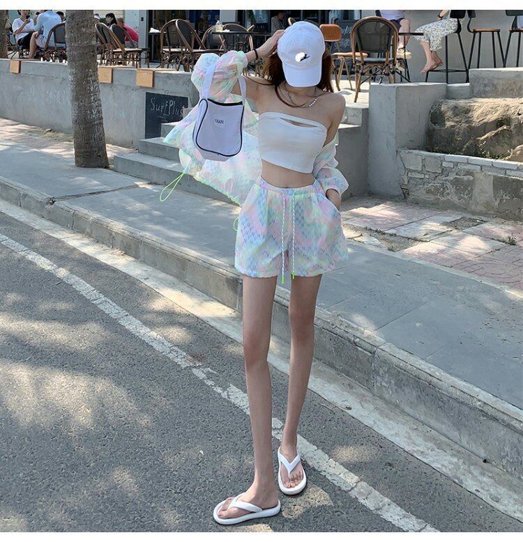 夏服レディースプリントトップス ストレッチウェストショーツ カジュアル ロング エラスティック 伸縮 夏物 長袖 ウエスト コーデ marchs6734884902299