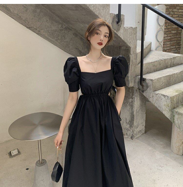 ウェストワンピースレディース夏服スカート スタイルパフスリーブスリーブブラック 夏物 ウエスト コーデ marchs6730774304068