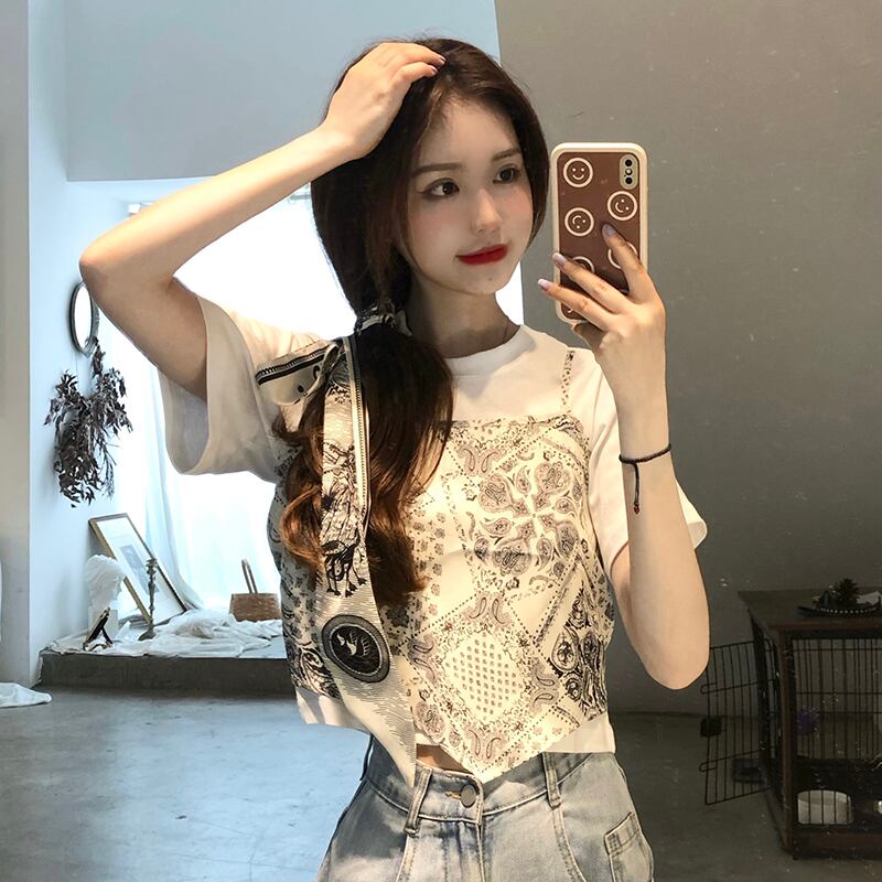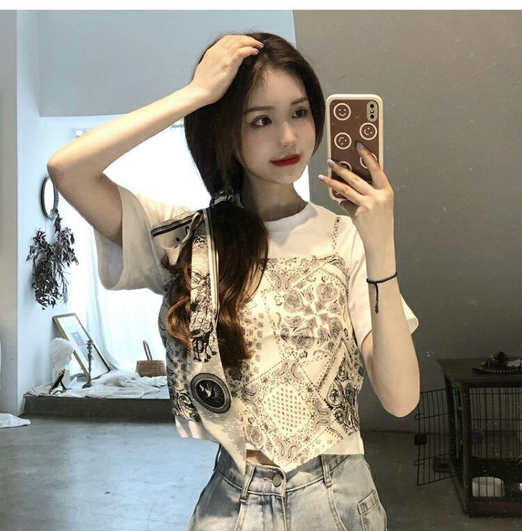 Flowerデザイン 夏服韓国ファッションショートトップス 夏物 フラワーデザイン スタイル コーデ marchs6796054902603