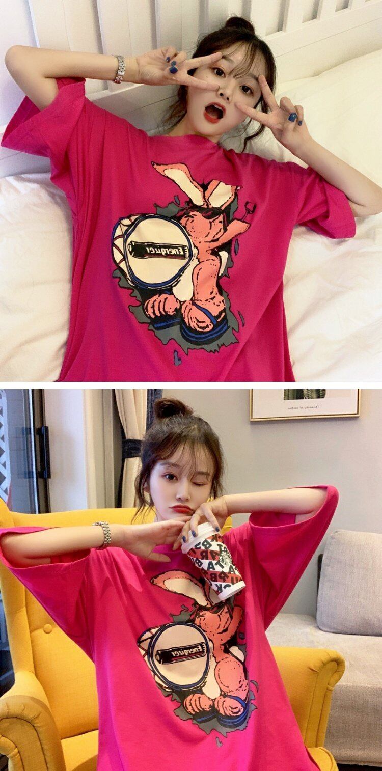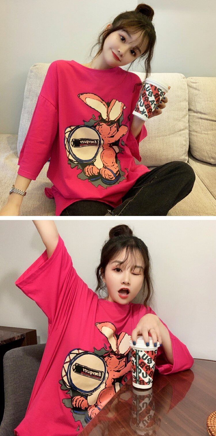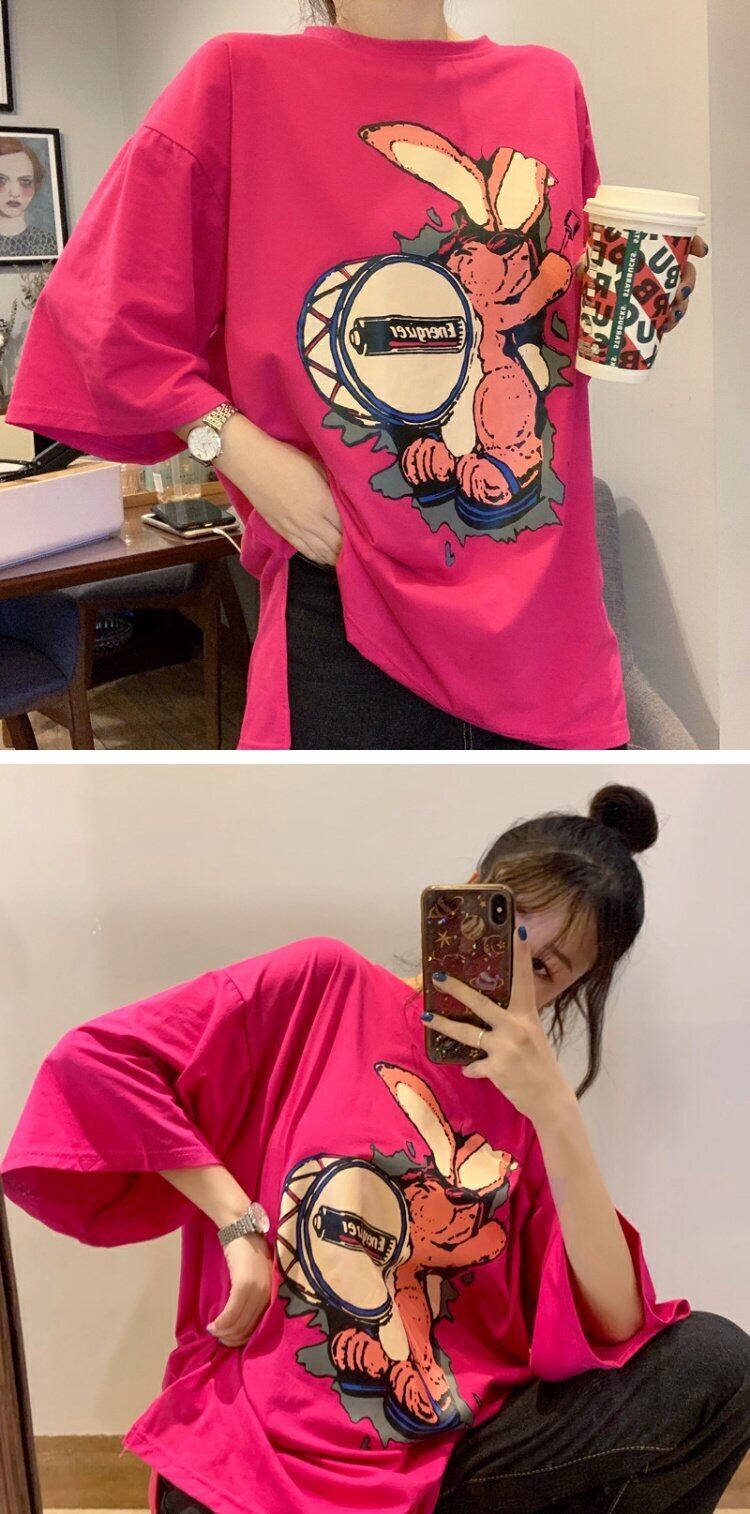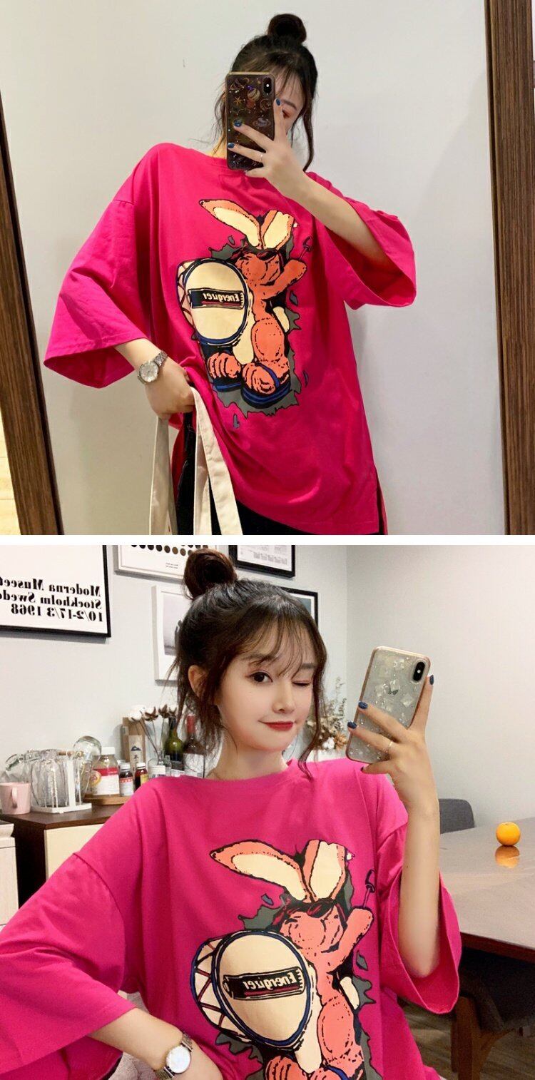 夏服レッドTシャツレディース韓国ファッションルーズトップス トレンド 夏物 ボーイズ スタイル コーデ marchs6771590234221