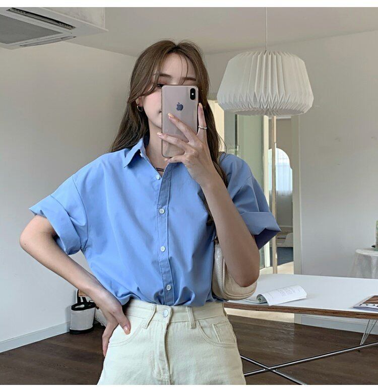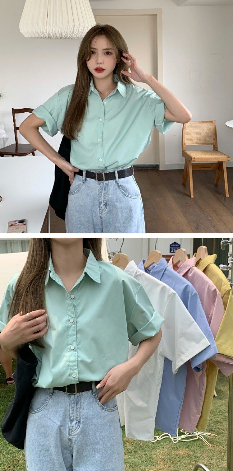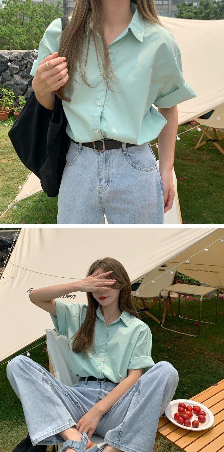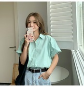 夏服薄手ルーズトップス 韓国ファッションスタイルグリーンシャツ レディース 大人ガーリー スウィート キュート カジュアル 夏物 コーデ marchs6751310628058