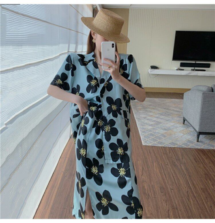 夏服韓国ファッションレディーススタイルシャツ プリントスカート 夏物 コーデ marchs6711931554997