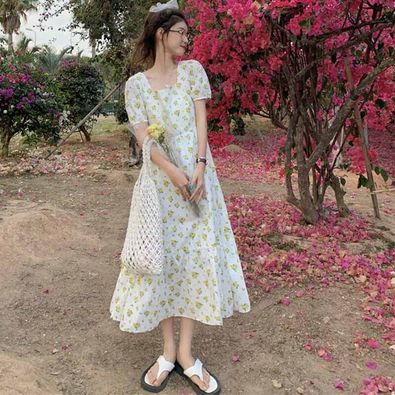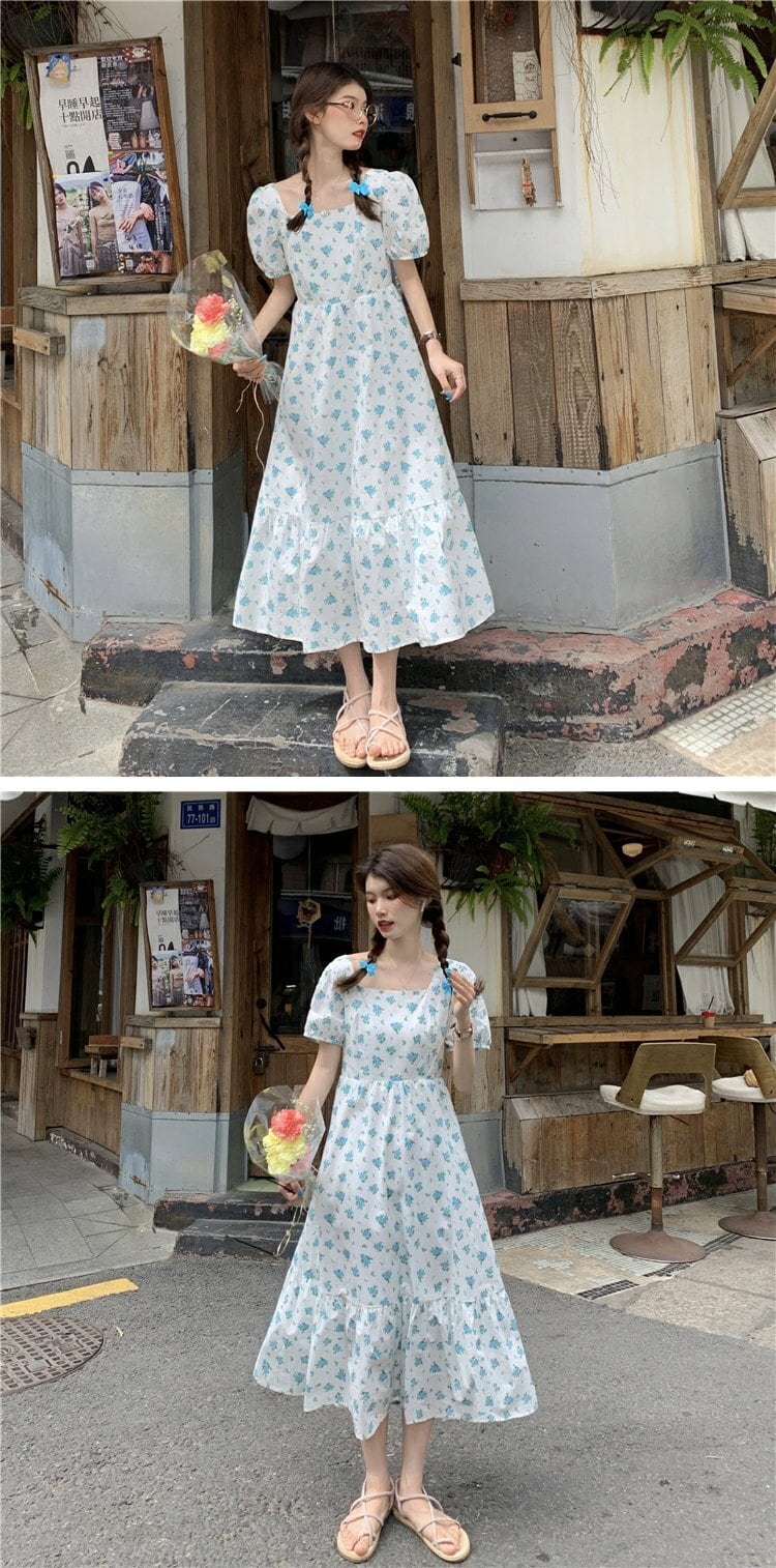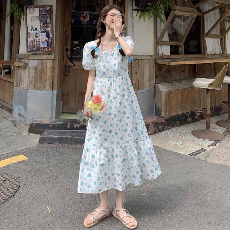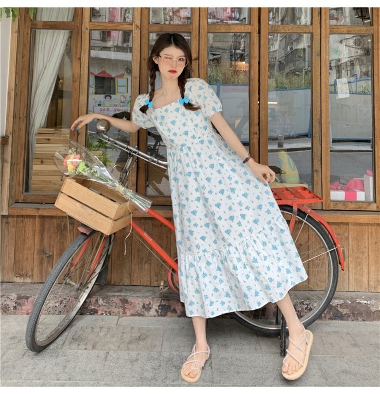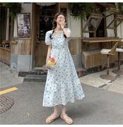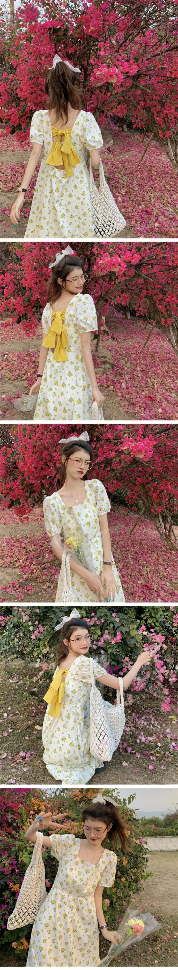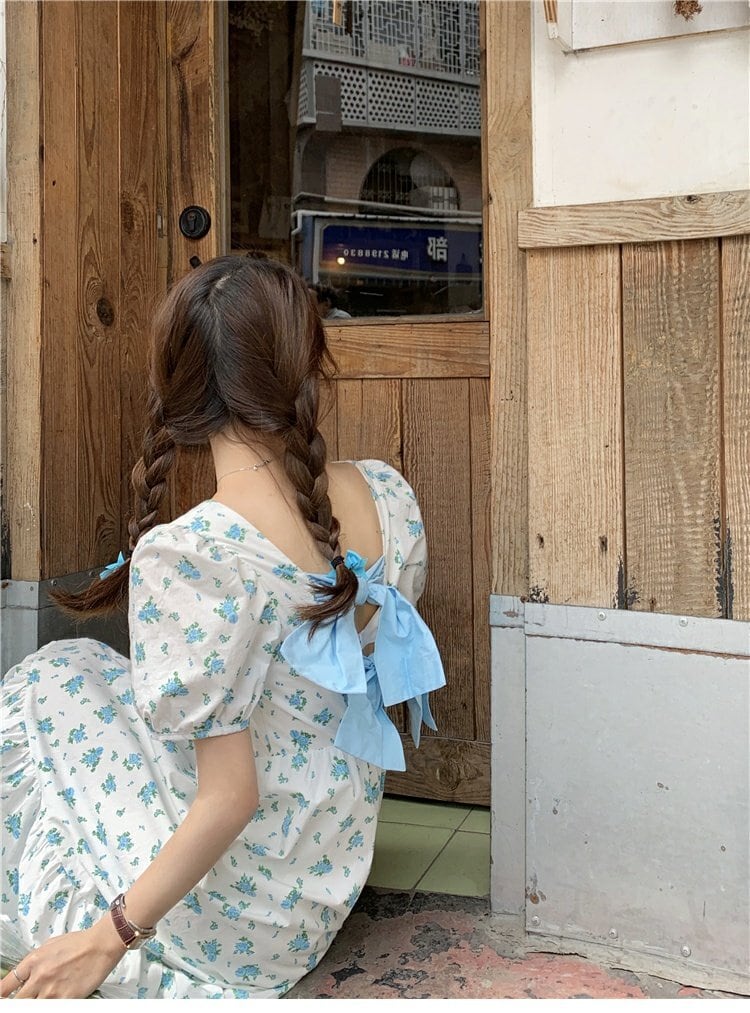 スリーブワンピース夏服バックレスロングリボンフローラルスカート 夏物 花柄 コーデ marchs6750780462981