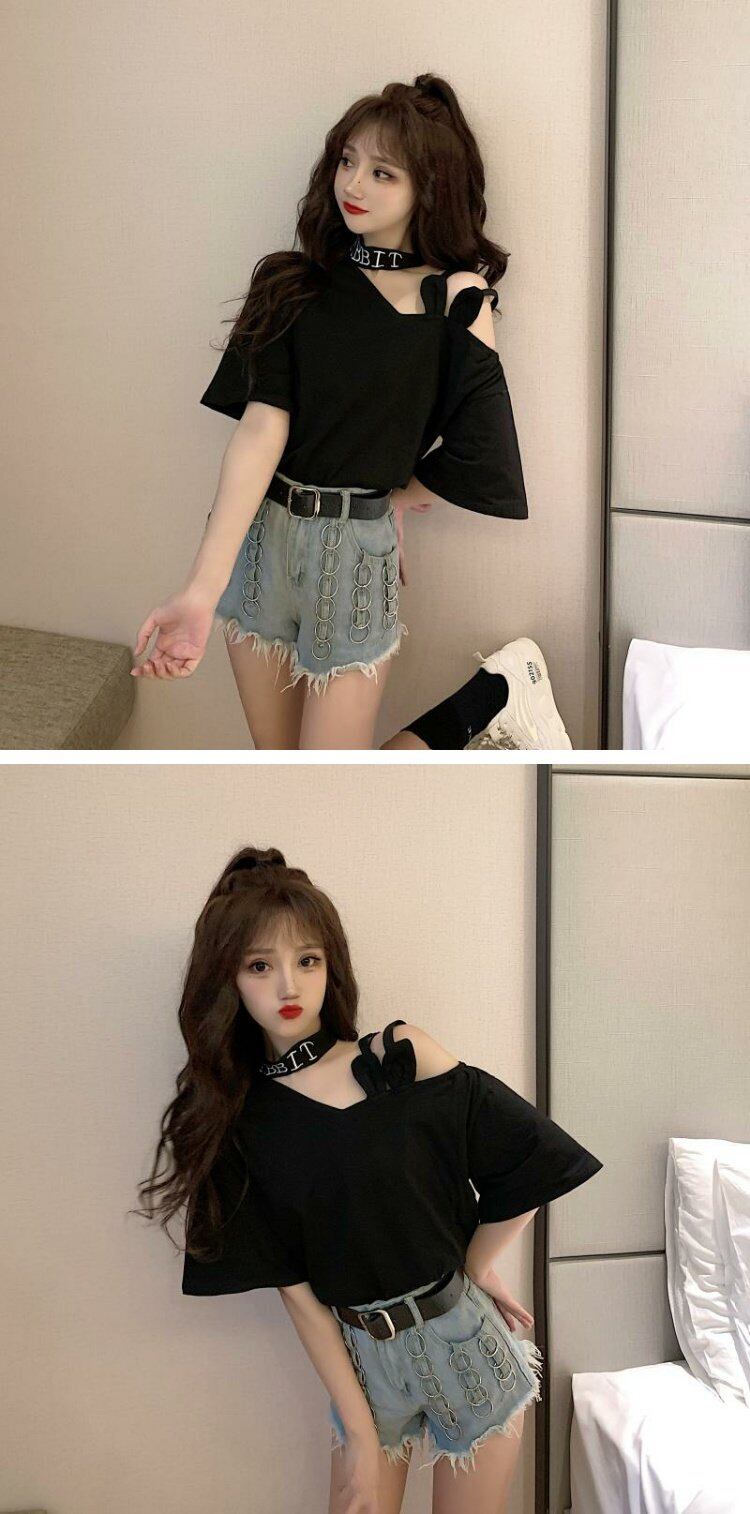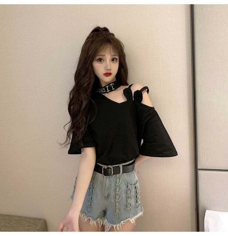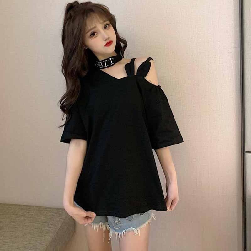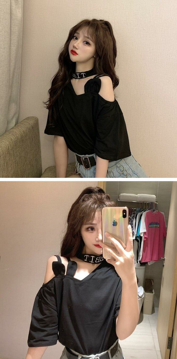 ストラップレスTシャツレディース夏服ブラックトップス トレンド 夏物 ヨーロピアン コーデ marchs6712694749395