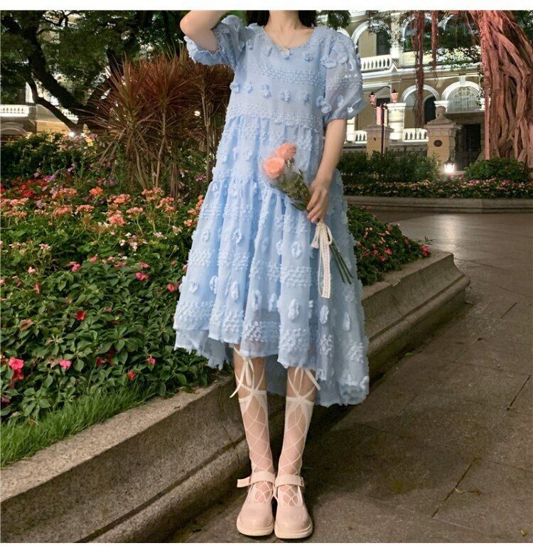 スタイルスカート ブルースリーブワンピース夏服 夏物 フラワーデザイン コーデ marchs6795158630655