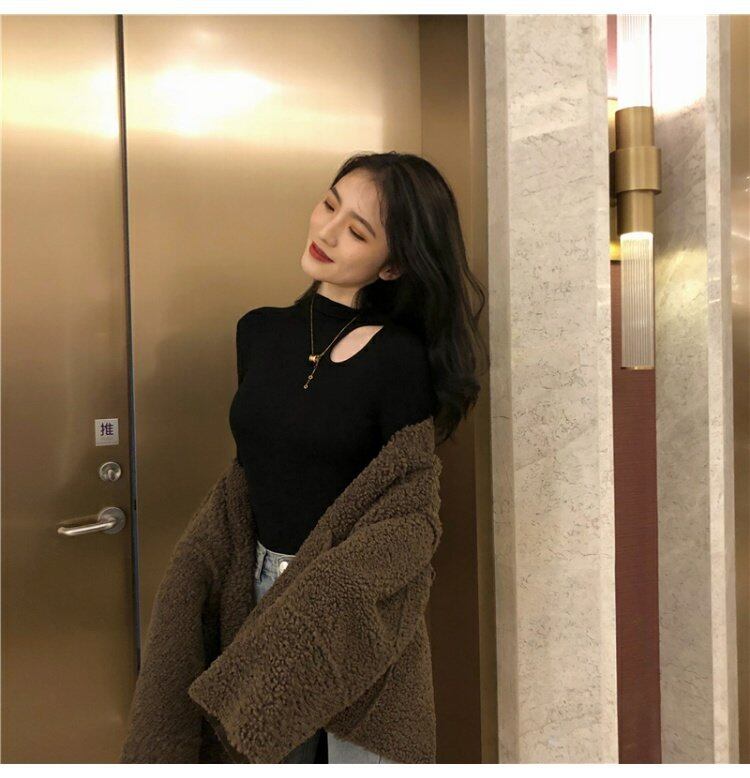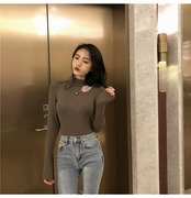 スプリングスタイルブラックスリムカラーゆったりシャツ Tシャツレディース ロング 春物 長袖 コーデ marchs6722355837578