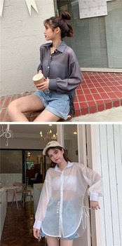 夏服ルーズシャツ レディース薄手トップス ロング 夏物 長袖 ミドル丈 コーデ marchs6784070588896