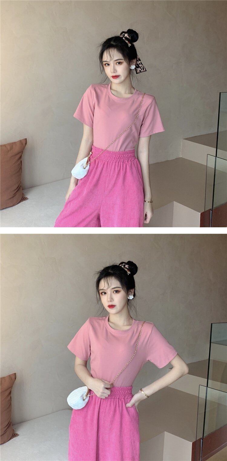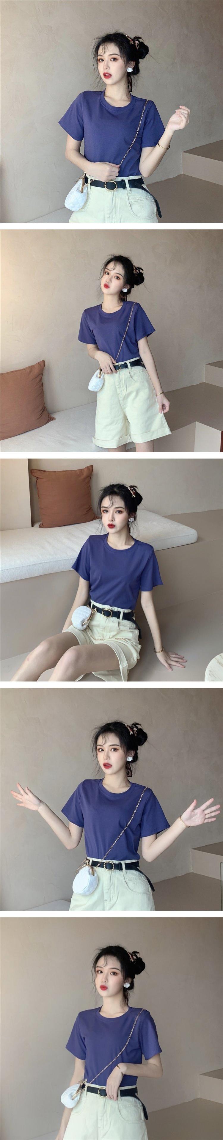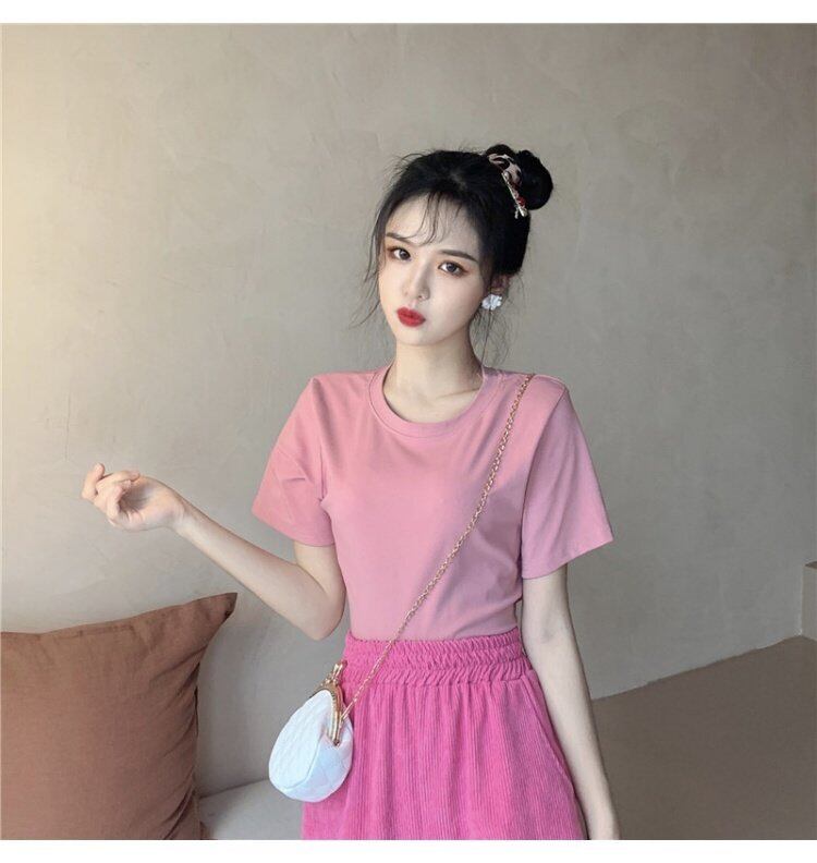 トップス 夏服韓国ファッションベーシックソリッド カラーラウンドネックプルオーバー ゆったりシャツ Tシャツレディーストレンド 夏物 Oネック ソリッドカラー スタイル コーデ marchs6731383235541