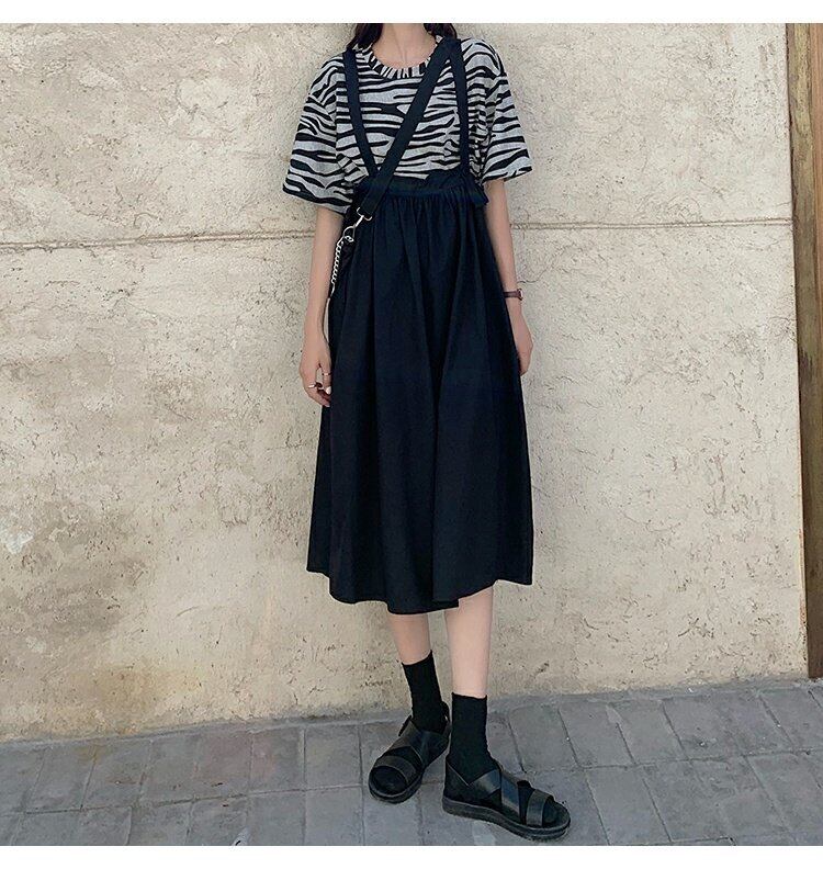 色:ゼブラ柄Tシャツ,ブラックストラップドレス