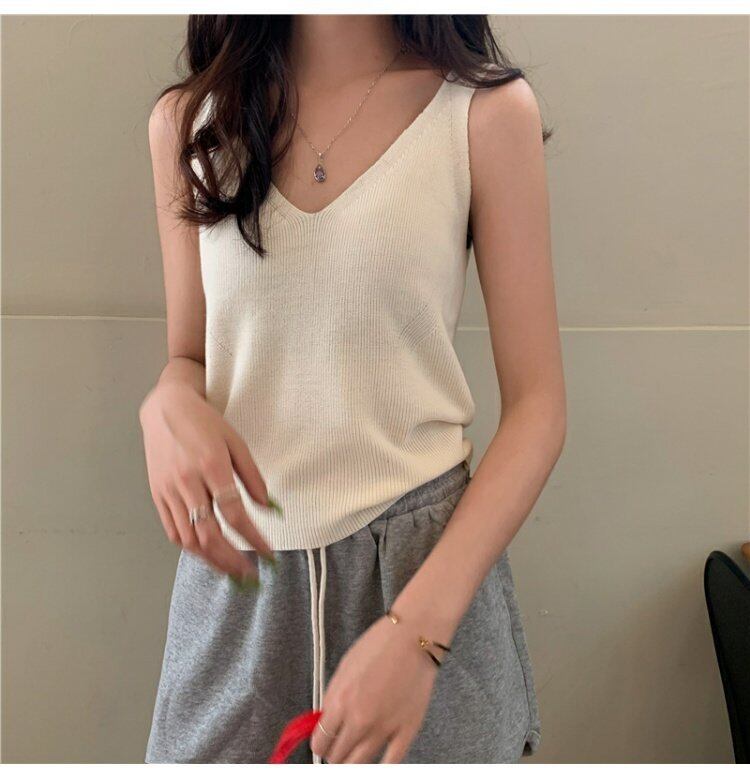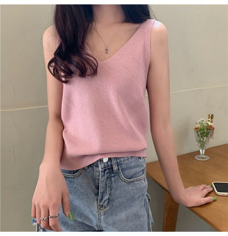 夏服Vネック薄手ノースリーブトップス ニットゆったりシャツ レディース 夏物 シルク パープル コーデ marchs6792270772564