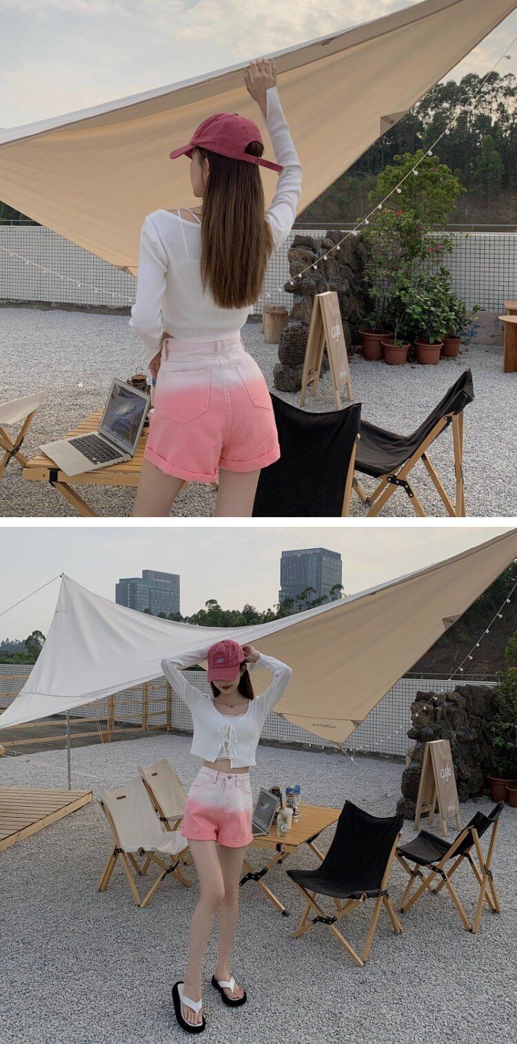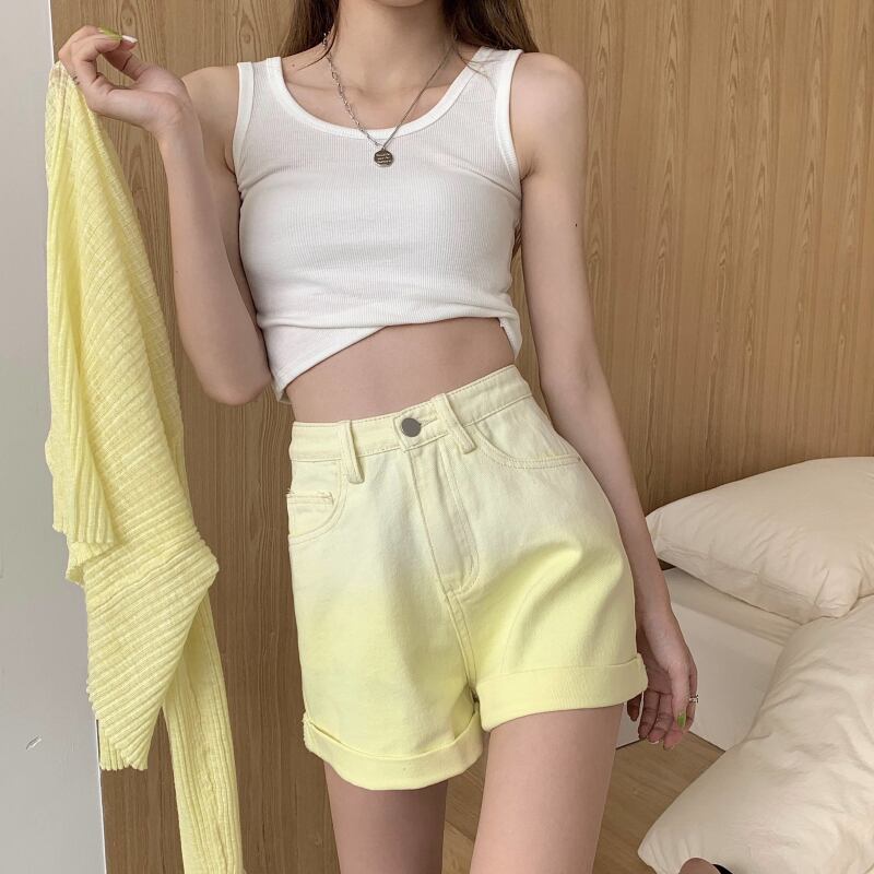 夏服カラーショーツ トレンドジーンズ レディース韓国ファッションルーズパンツ 夏物 スタイル コーデ marchs6728434298014