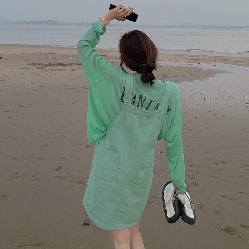 色:グリーンT,ストラップドレス