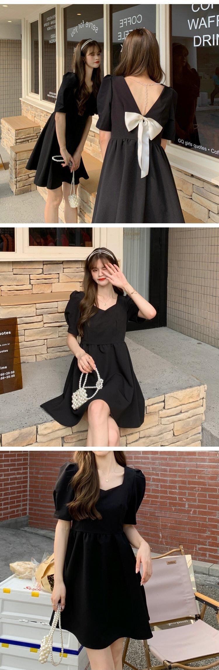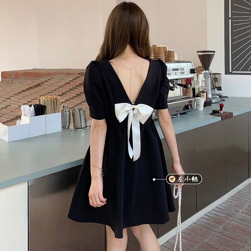 ホルターリボンブラックワンピース夏服スタイルスタンダードウェストスカート レディース レトロ 夏物 ウエスト コーデ marchs6790346604084