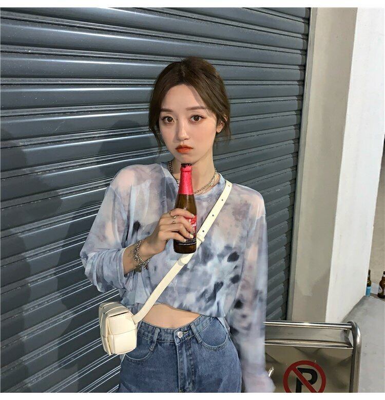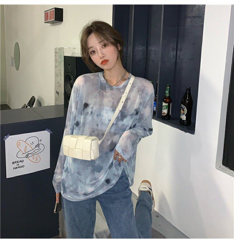 メッシュTシャツシャツ 夏服ルーズ薄手ゆったりトップス ロング レッド 夏物 シルク 長袖 コーデ marchs6793123193053
