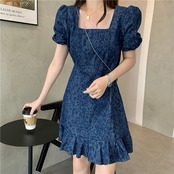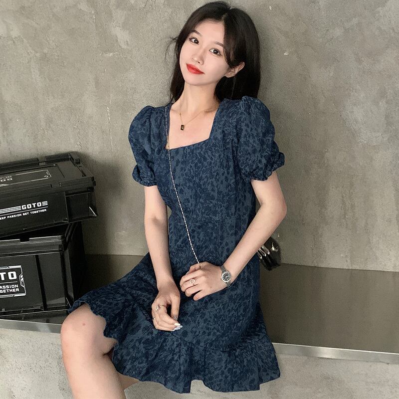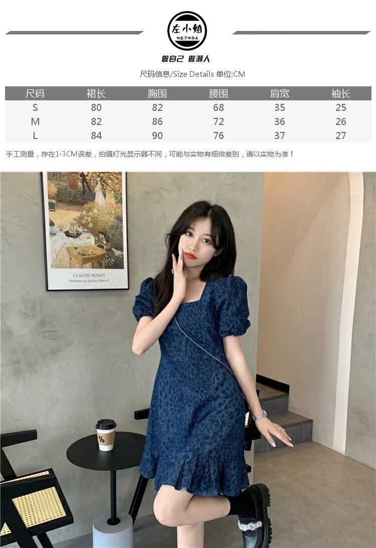 スタンダードスリーブレオパードプリント柄ワンピースレディース夏服スタイルウェストスリムスカート レトロ 大人ガーリー スウィート キュート カジュアル 夏物 スクウェア ウエスト コーデ marchs6731045009086