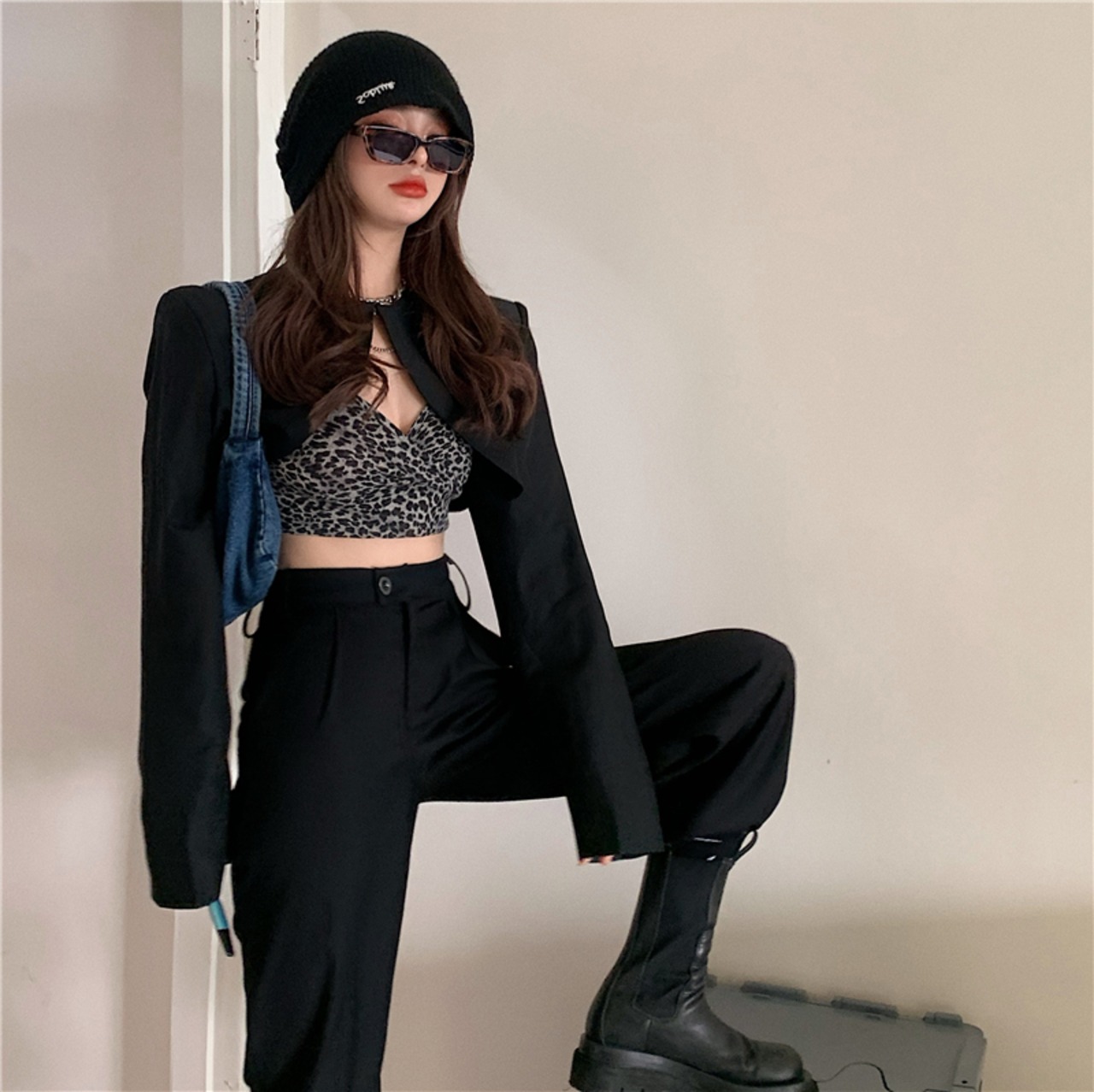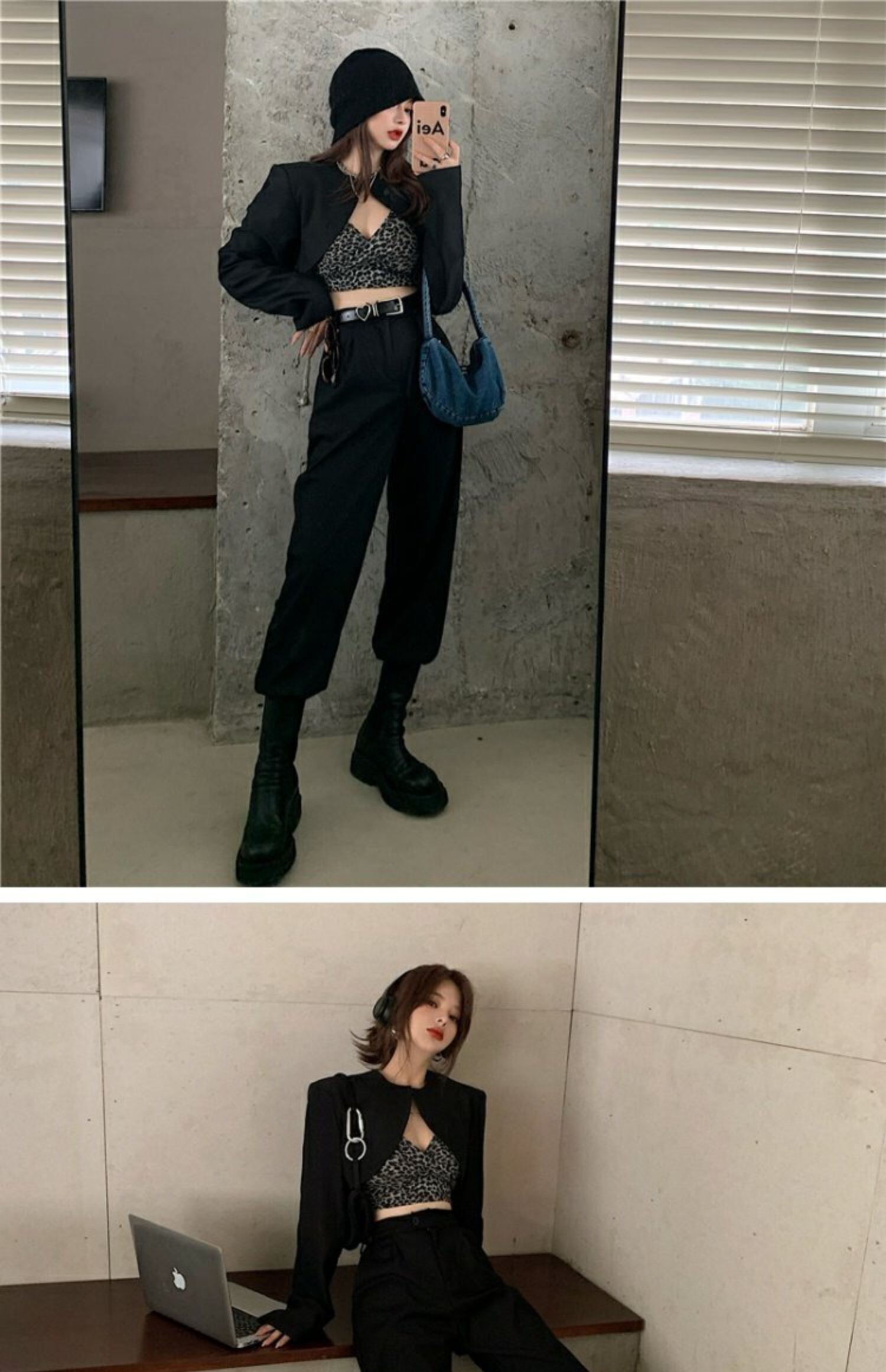 レディーススプリングジャケット レオパードプリント柄ハイウェストウェストカジュアルパンツ ストリート 春物 ウエスト コーデ marchs6764567332276