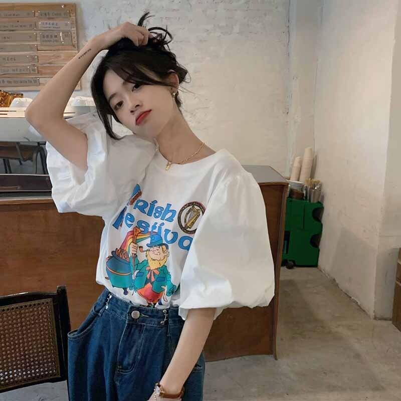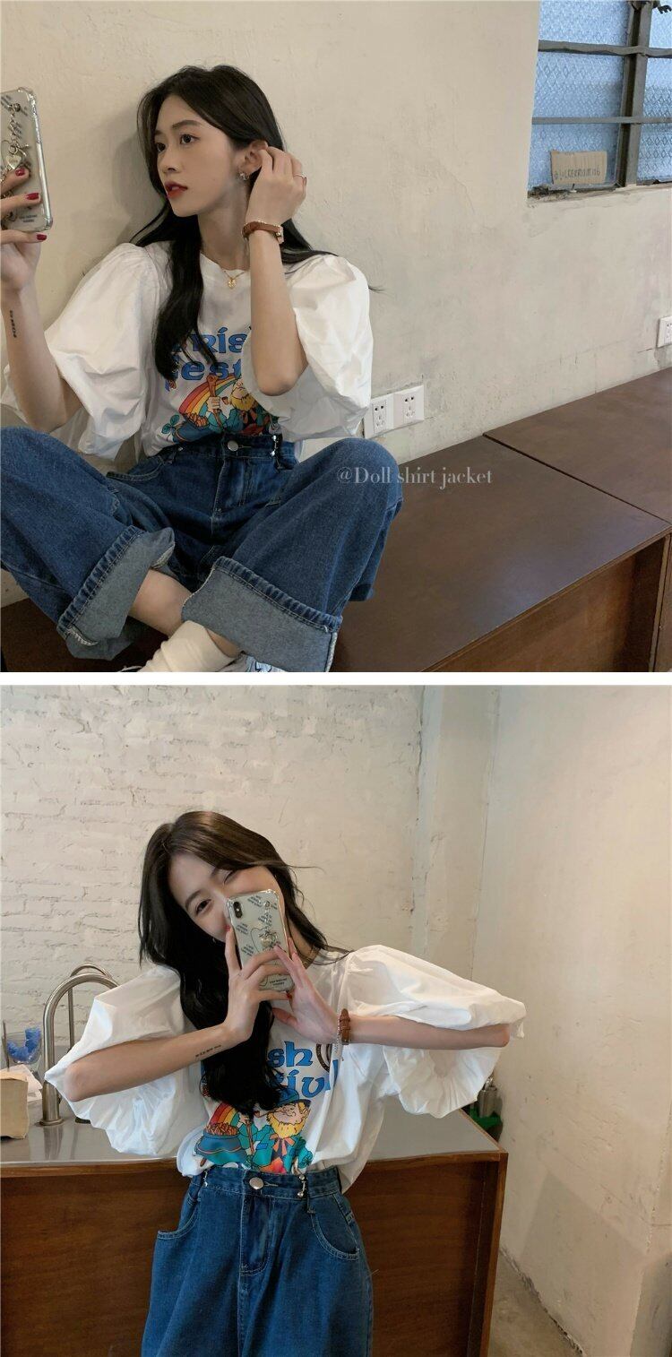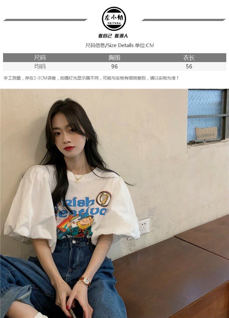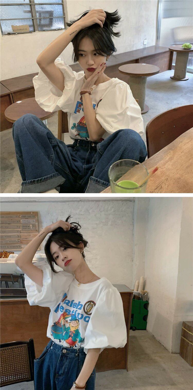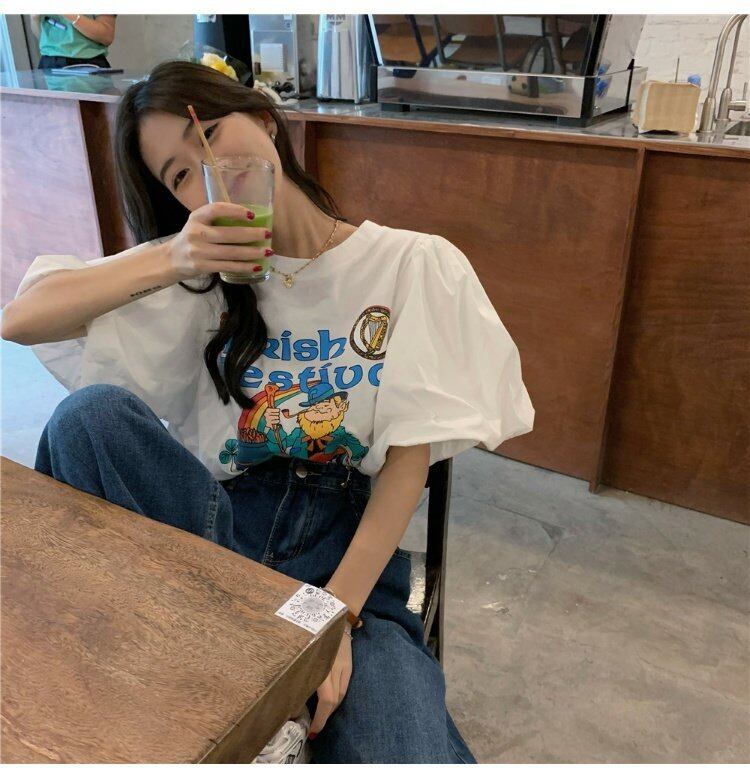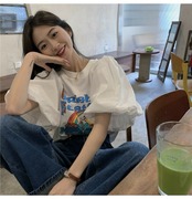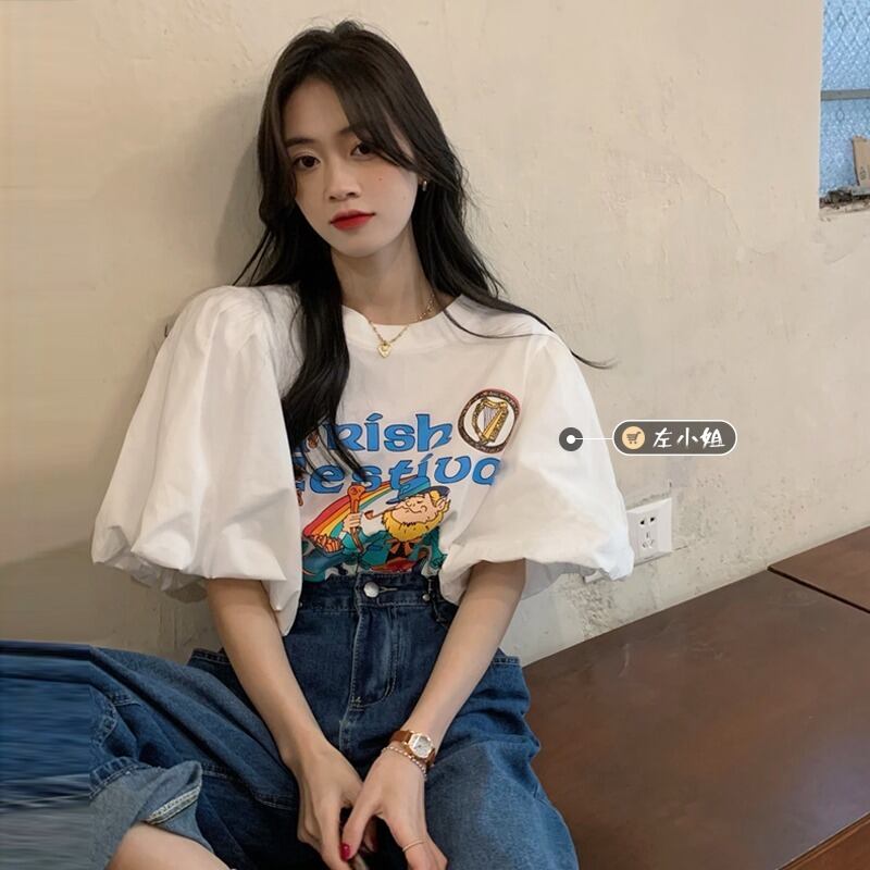 韓国ファッションスリーブTシャツレディース夏服プリントトップス 大人ガーリー スウィート キュート カジュアル 夏物 コーデ marchs6758697304693
