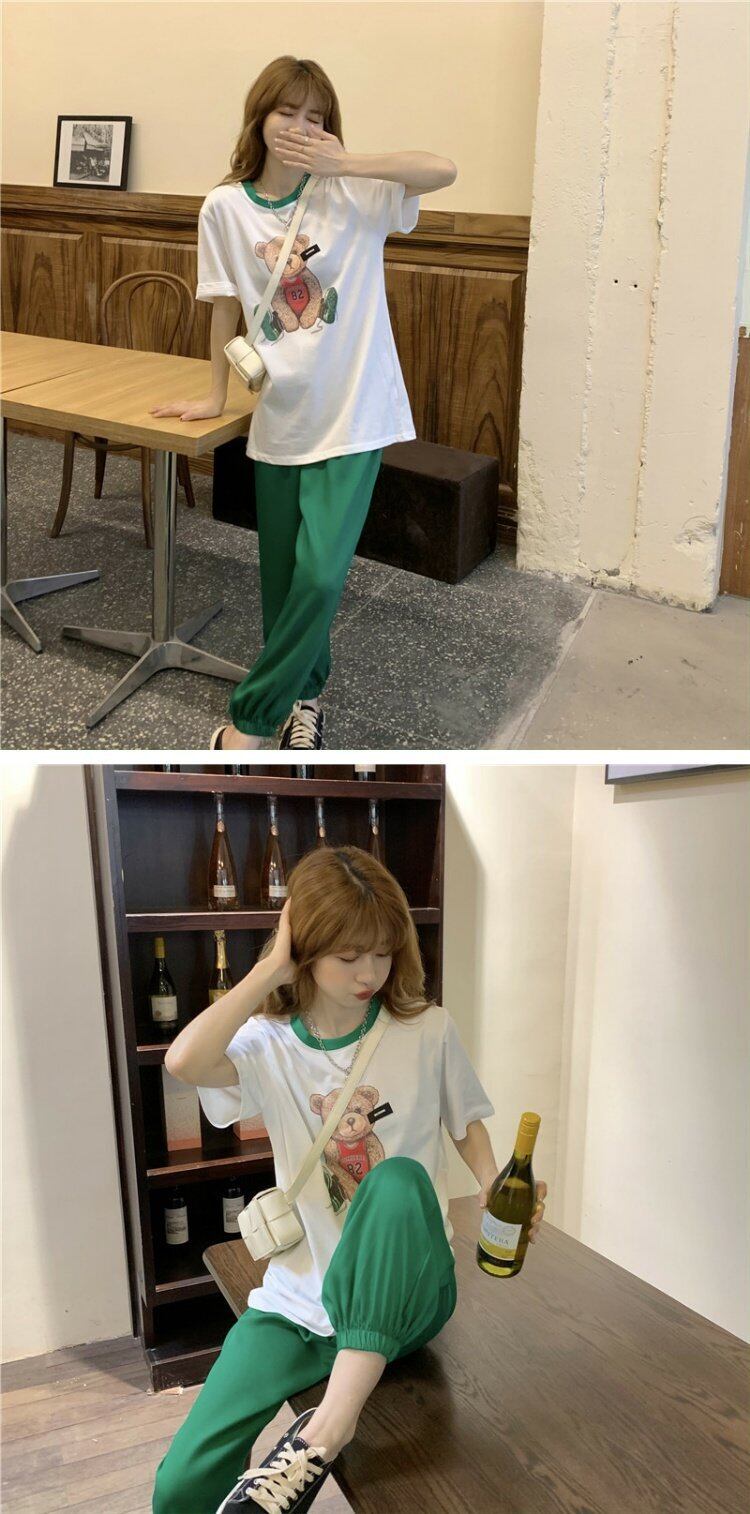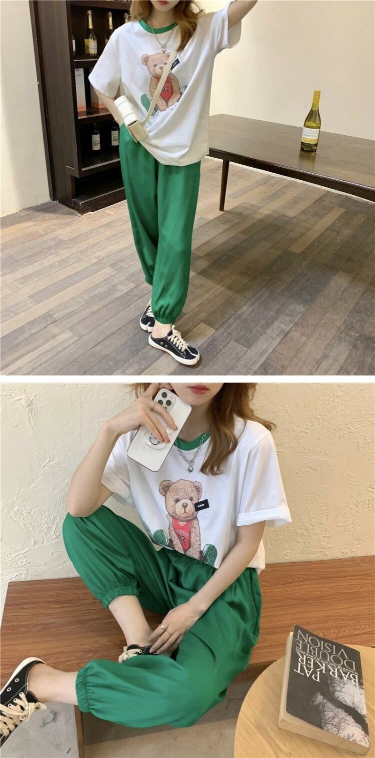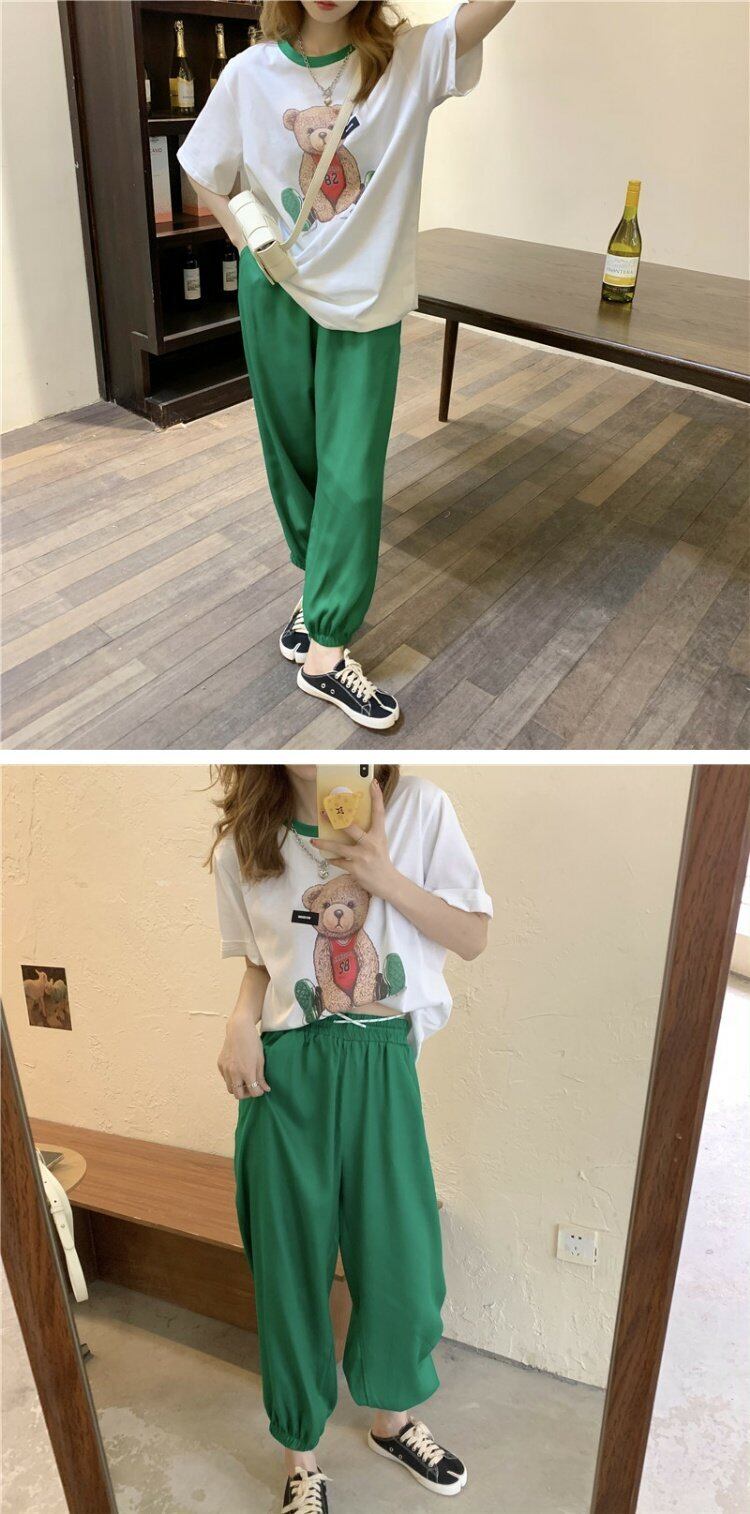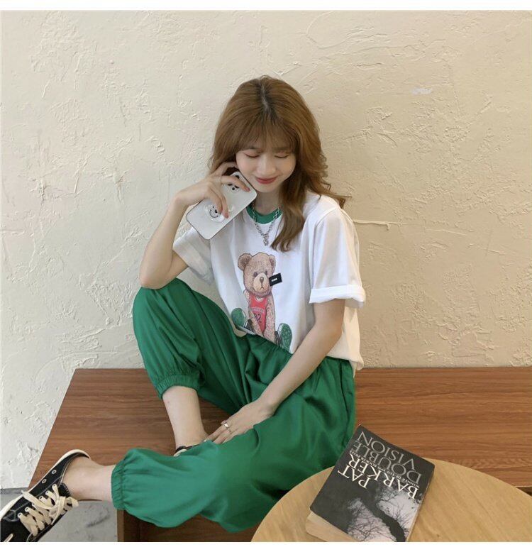 レディース夏服スタイルTシャツパンツ グリーン 夏物 コーデ marchs6745566166266